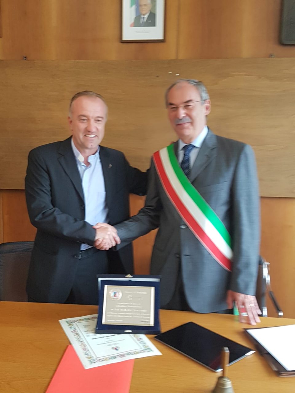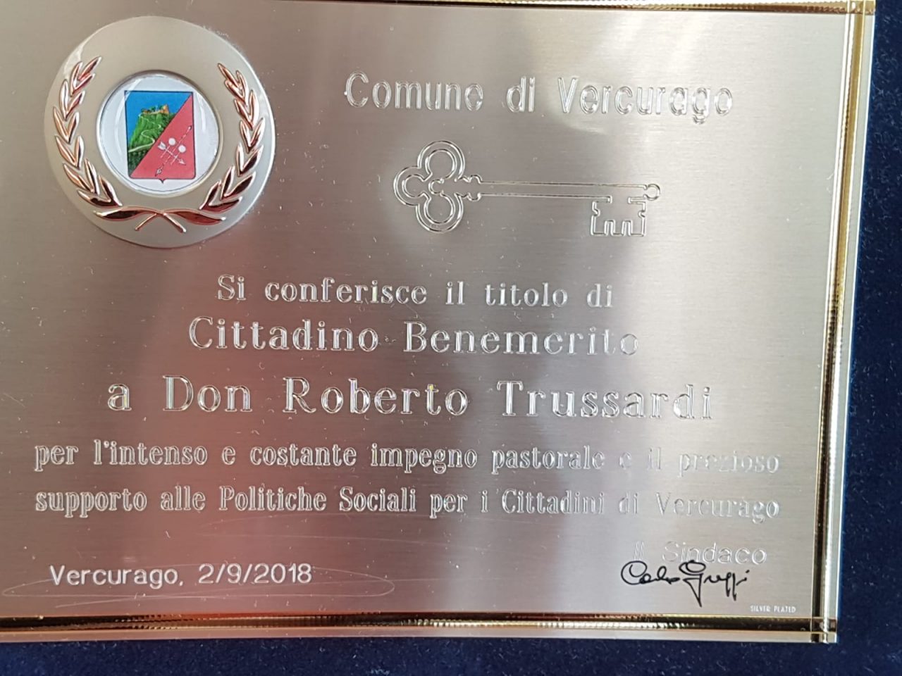 Don Trus diventa cittadino benemerito. A breve il sacerdote lascerà le parrocchie di Vercurago e del Pascolo per guidare la Caritas Diocesana di Bergamo ( al suo posto giungerà don Andrea Pireletti) e l’Amministrazione comunale di Vercurago ha deciso di compiere un gesto per “legare simbolicamente” per sempre l’amato don Roberto Trussardi al paese. Ieri , domenica, in una sala consigliare gremita, è stata consegnata la benemerenza civica al sacerdote. «Non cittadino onorario per quello che hai fatto ma cittadino benemerito per quello che ci lasci».