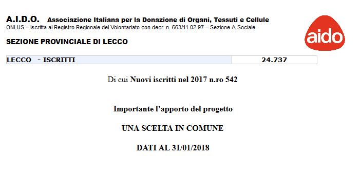 “Nonostante il lavoro svolo e i traguardi raggiunti nel 2017 sia per numero di prelievi che numero di possibili donatori, resta ancora molto da fare” aggiunge il presidente. Ecco quindi i dati dell’Aido Provinciale