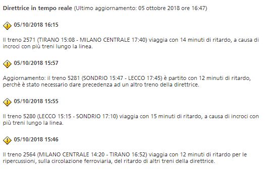“A causa dell’investimento di una persona, avvenuto tra le stazioni di PADERNO ROBBIATE e CARNATE USMATE, e il conseguente intervento da parte delle Autorità competenti, i treni potranno subire ritardi di circa 60 minuti, variazioni di percorso o cancellazioni. Questo l’avviso apparso sul sito di Trenord.