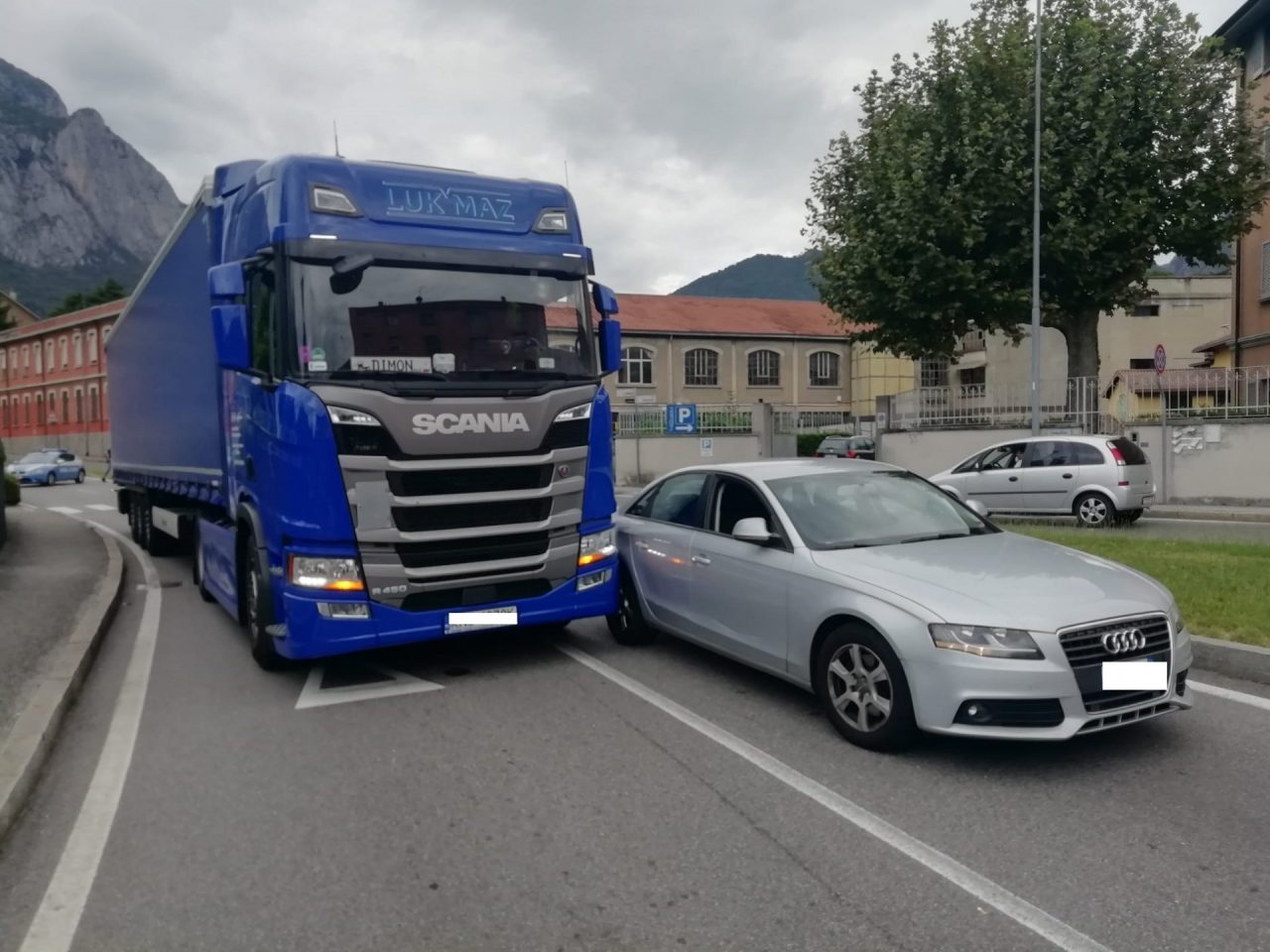 Non ha provocato feriti ma ha completamente mandato in tilt la circolazione il secondo incidente avvenuto pochi istanti dopo sempre in largo Caletotto. Un grosso camion che viaggiava verso via Amendola ha “allargato” troppo la curva andando a colpire un’ Audi. Sul posto sono intervenuti anche gli agenti della Polizia Stradale di Lecco che hanno deviato il traffico all’interno del parcheggio del centro commerciale.