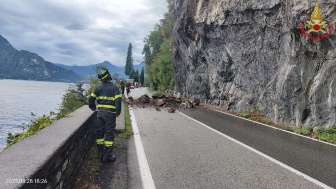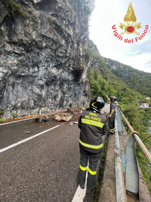 Anche in questo caso le rocce che si sono staccate dal fronte rocciososono piombato sulla sede stradale senza provocare danni a veicoli in transito o a persone. Sul posto si è precipitata una autopompa dal distaccamento di Bellano dei Vigili del fuoco.