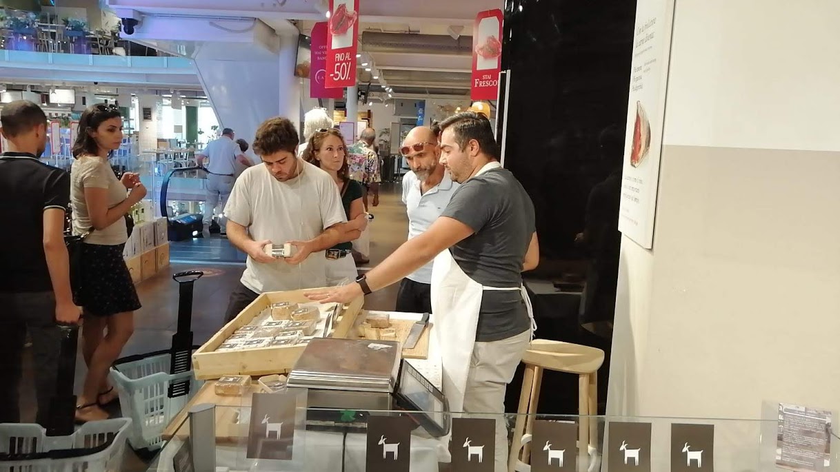 Nei padiglioni di Eataly – come di consueto affollatissimi – i titolari dell’Azienda Chiara e Agostino Ferrari hanno avuto modo di incontrare centinaia e centinaia di visitatori illustrando modalità e tecniche di allevamento delle capre di razza Camosciata delle Alpi, all’insegna del benessere animale, e di produzione di vari tipi di formaggio, dai tradizionali caprini freschi al latteria stagionato e alle caciotte passando per i fioroni e i quadrotti a crosta lavata.