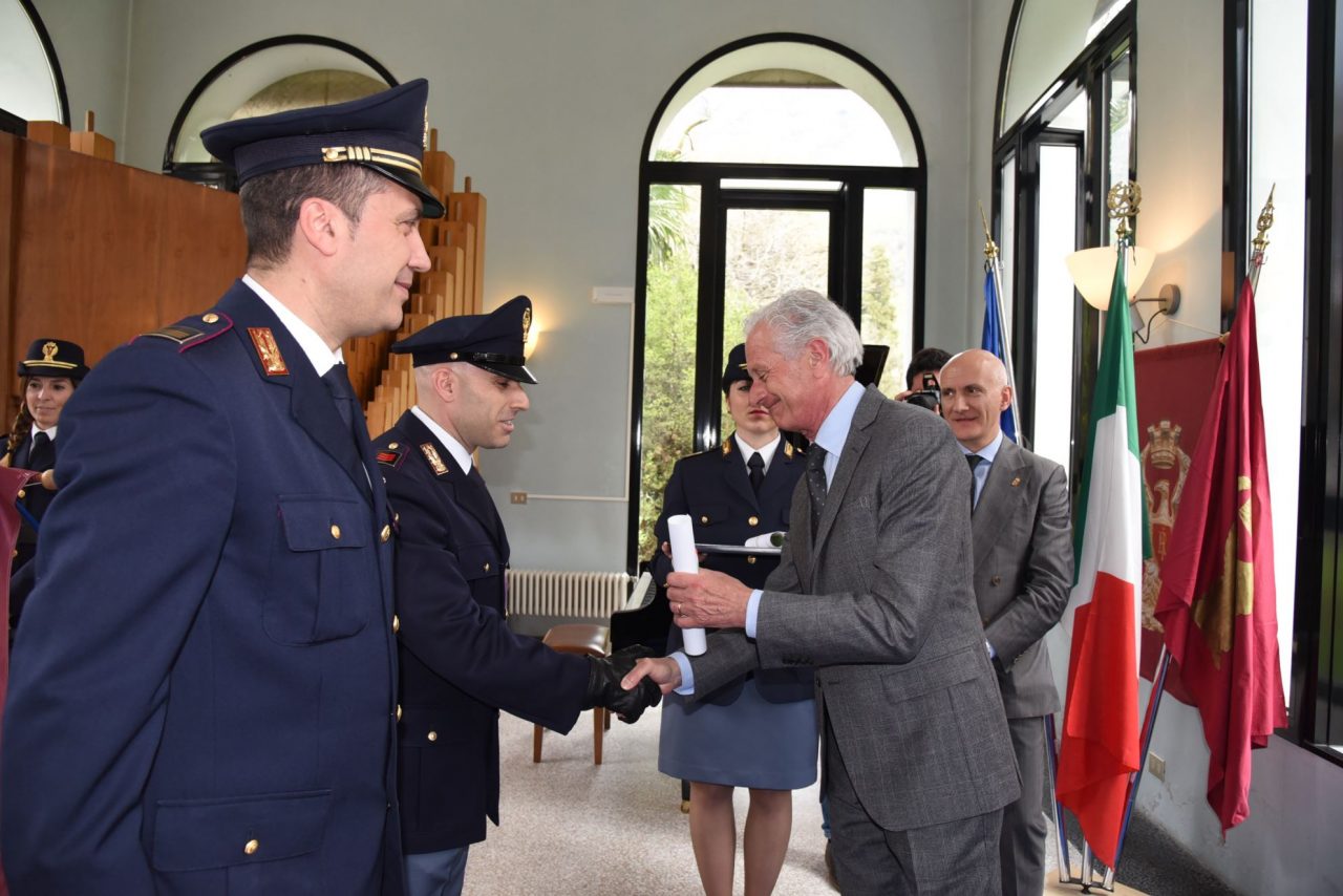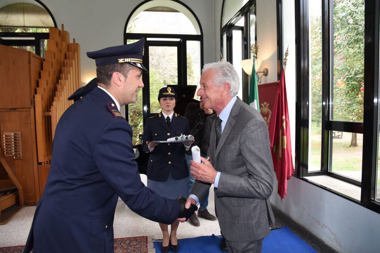 La cerimonia si è svolta nella sala concerti, messa a disposizione dall’Amministrazione comunale e dal Civico istituto musicale Zelioli che nella storica villa di Maggianico ha la sua sede. Tra le autorità convenute il prefetto Liliana Baccari e il presidente del Tribunale di Lecco Ersilio Secchi. In rappresentanza del Municipio il sindaco Virginio Brivio, il vicesindaco Francesca Bonacina, l’assessore Corrado Valsecchi, ma anche il comandante del Corpo di Polizia locale Paolo Borgotti. Presente anche la senatrice (ex sindaco di Lecco) Antonella Faggi. Ad accoglierli il questore Filippo Guglielmino. La premiazione è stata preceduta dalla lettura dei messaggi delle Istituzioni, del capo dello Stato Sergio Mattarella, del ministro degli Interni Marco Minniti, del capo della Polizia Franco Gabrielli.