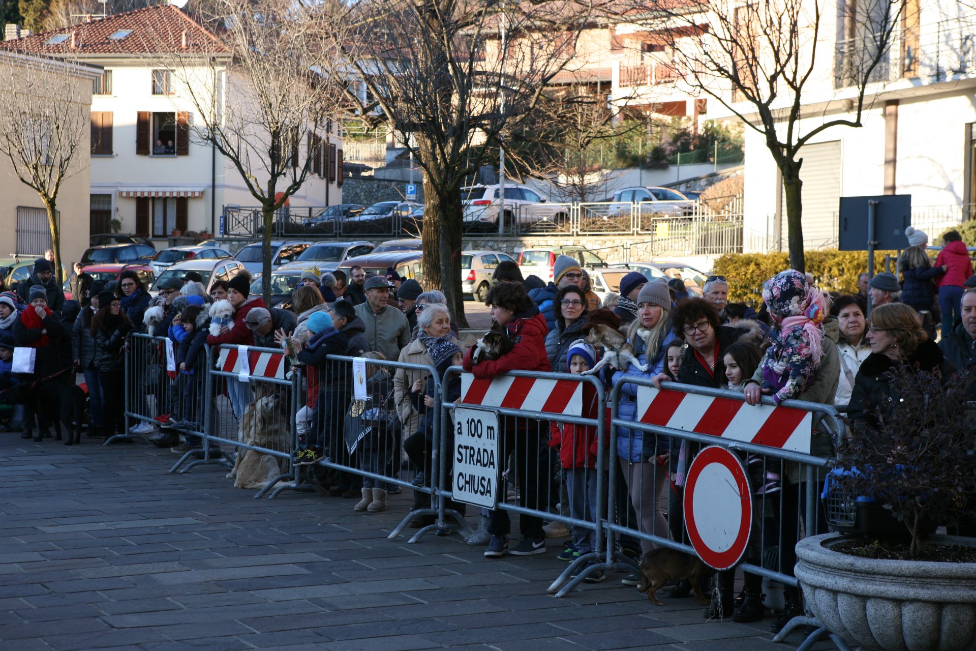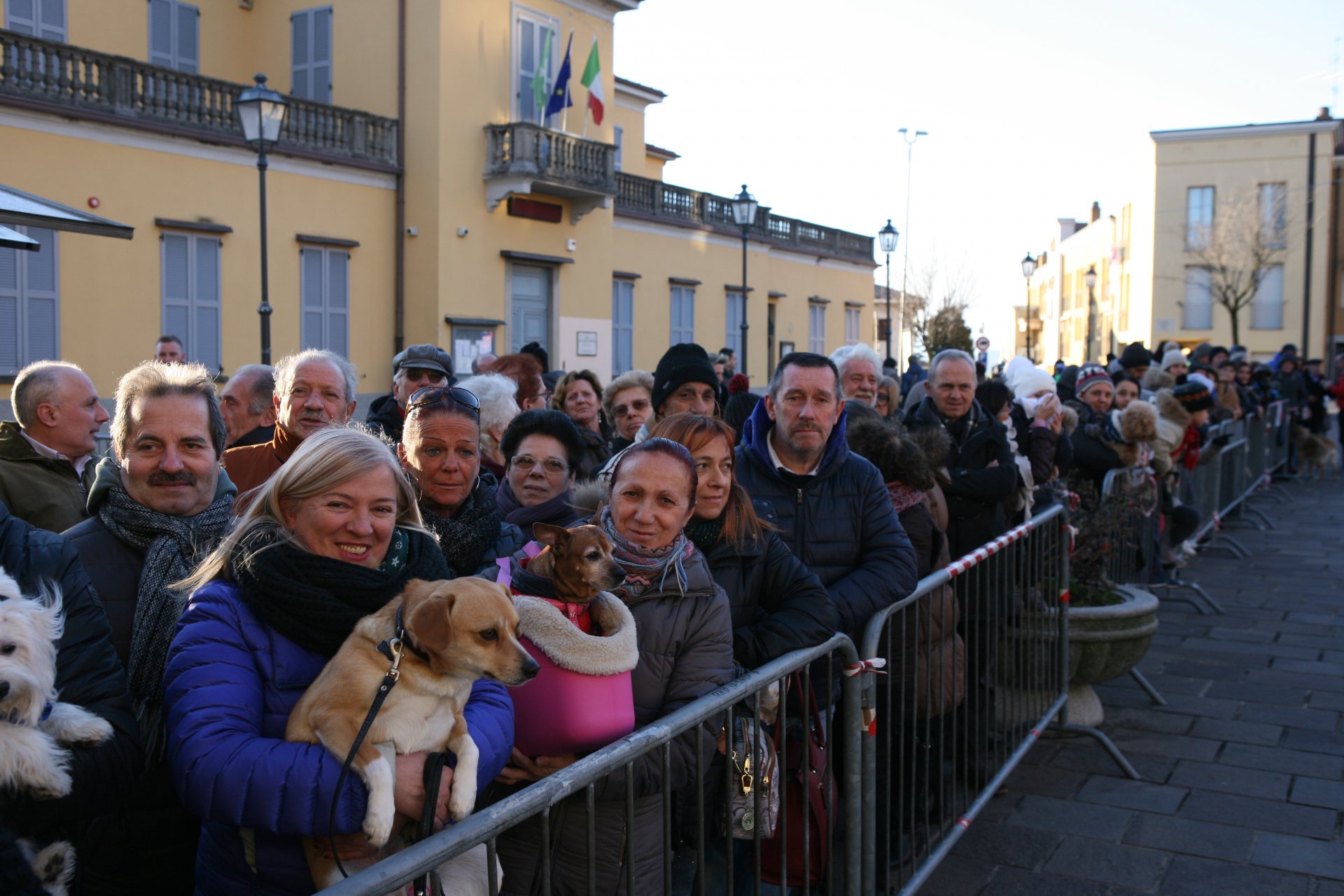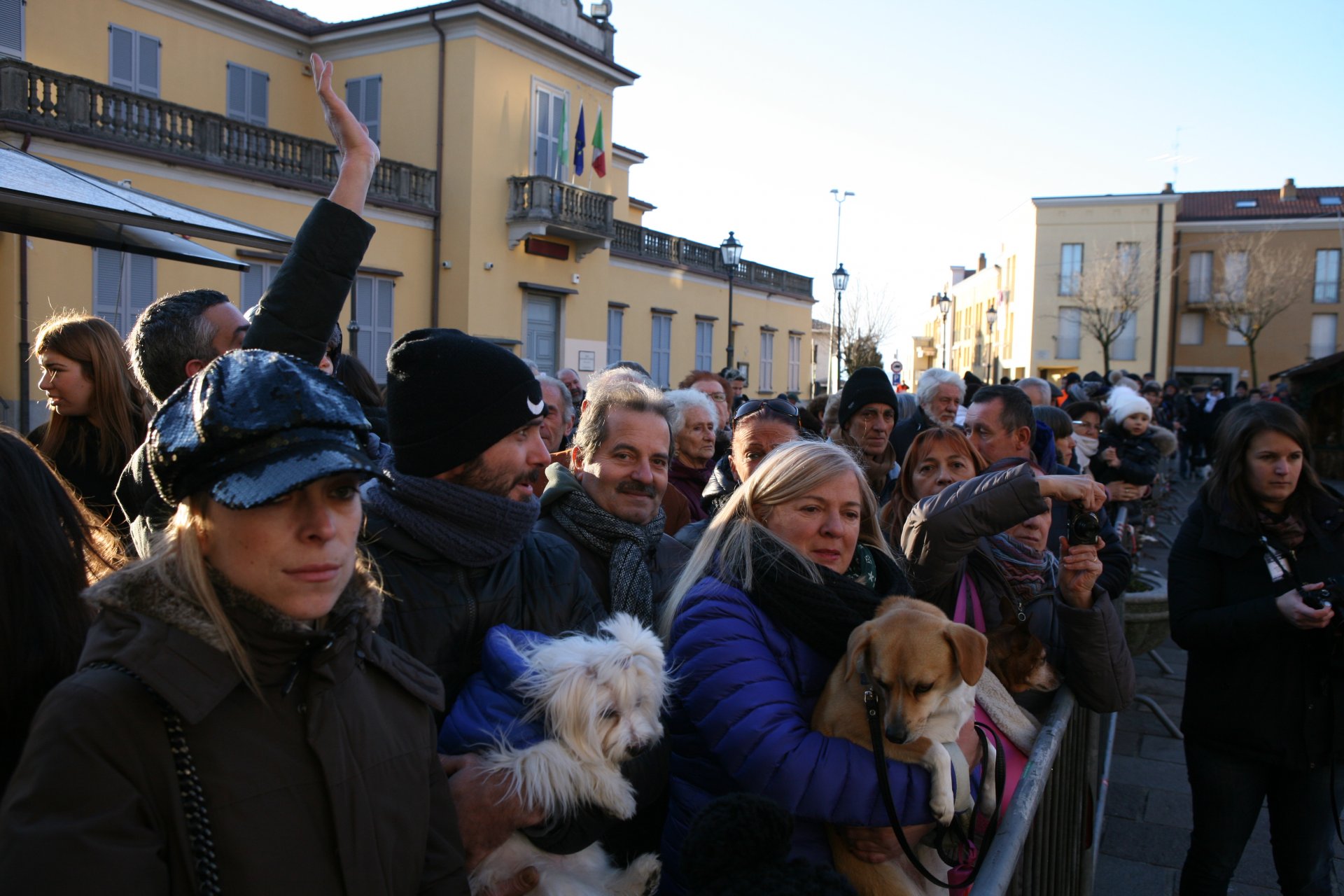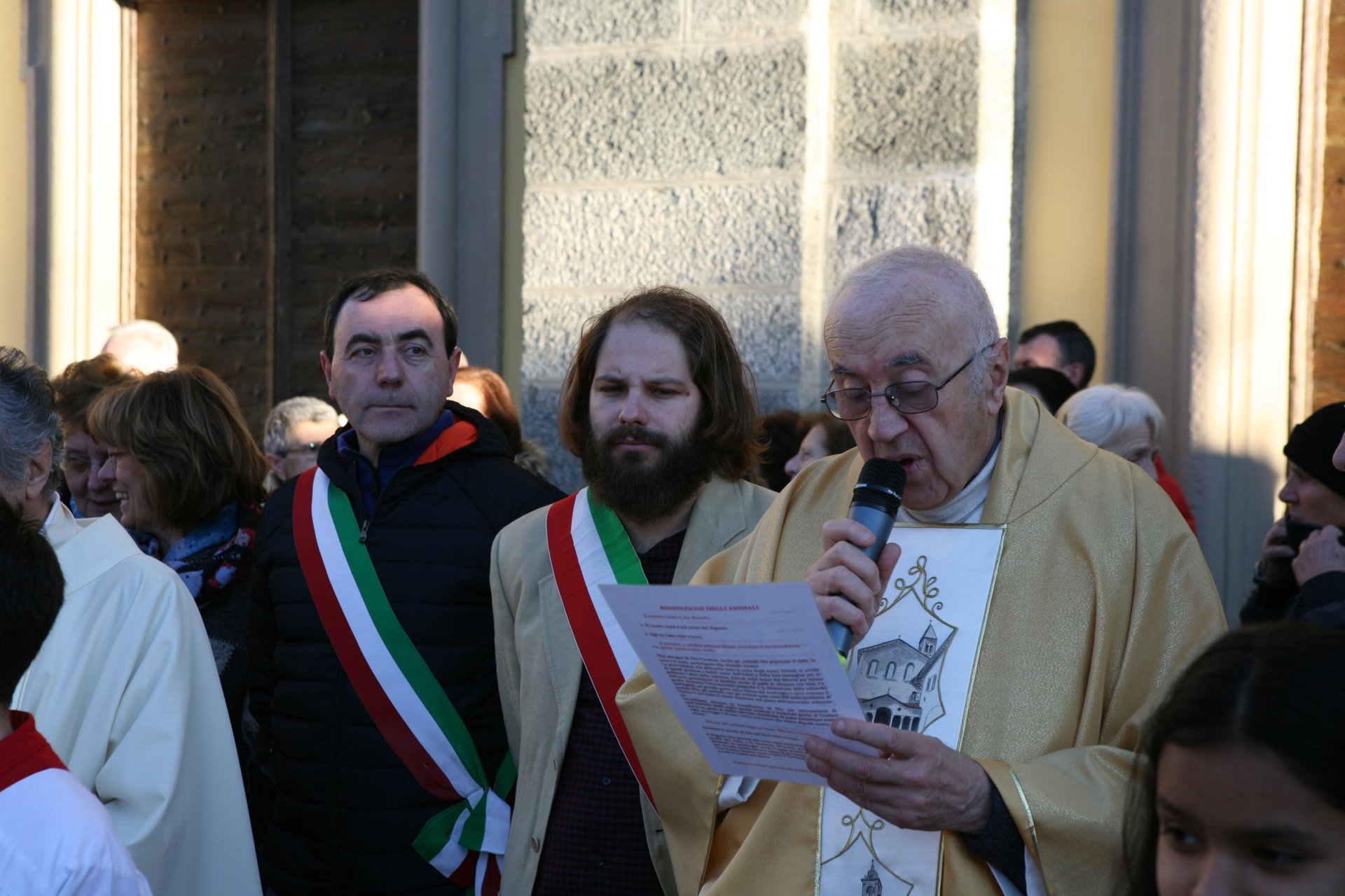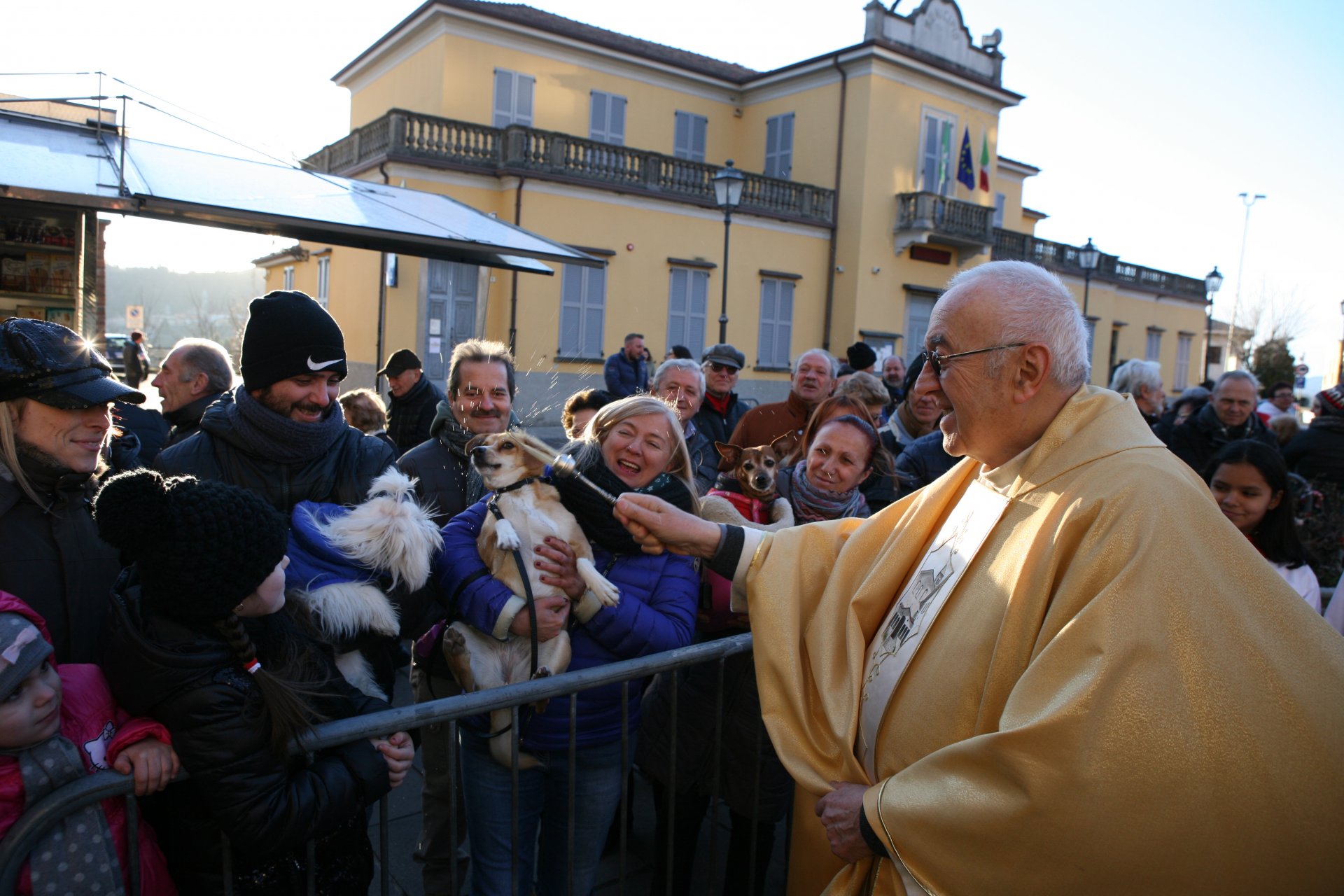 Don Massimo ha iniziato a benedire i numerosi animali presenti sul sagrato della chiesa, attraversando tutta la piazza e porgendo un saluto anche ai fedeli.