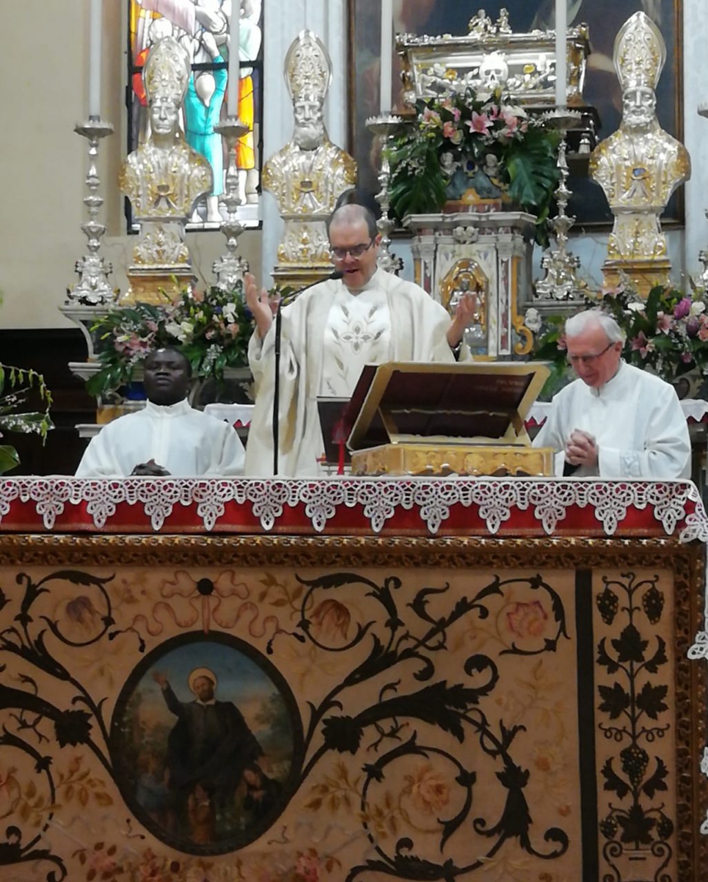“Mi sento un po’ a disagio oggi, qui alla festa di San Girolamo, anche se in questa Basilica ho celebrato tante volte. Per me ritornare qui come Arcivescovo è un grande dono, ma anche una grande responsabilità – ha detto monsignor Franco Moscone – Salutando i miei confratelli e tutte le persone legate alla nostra famiglia, dico a tutti voi di essere innamorati delle nostre famiglie e delle persone che ci stanno accanto, così facendo ameremo veramente con il cuore”.