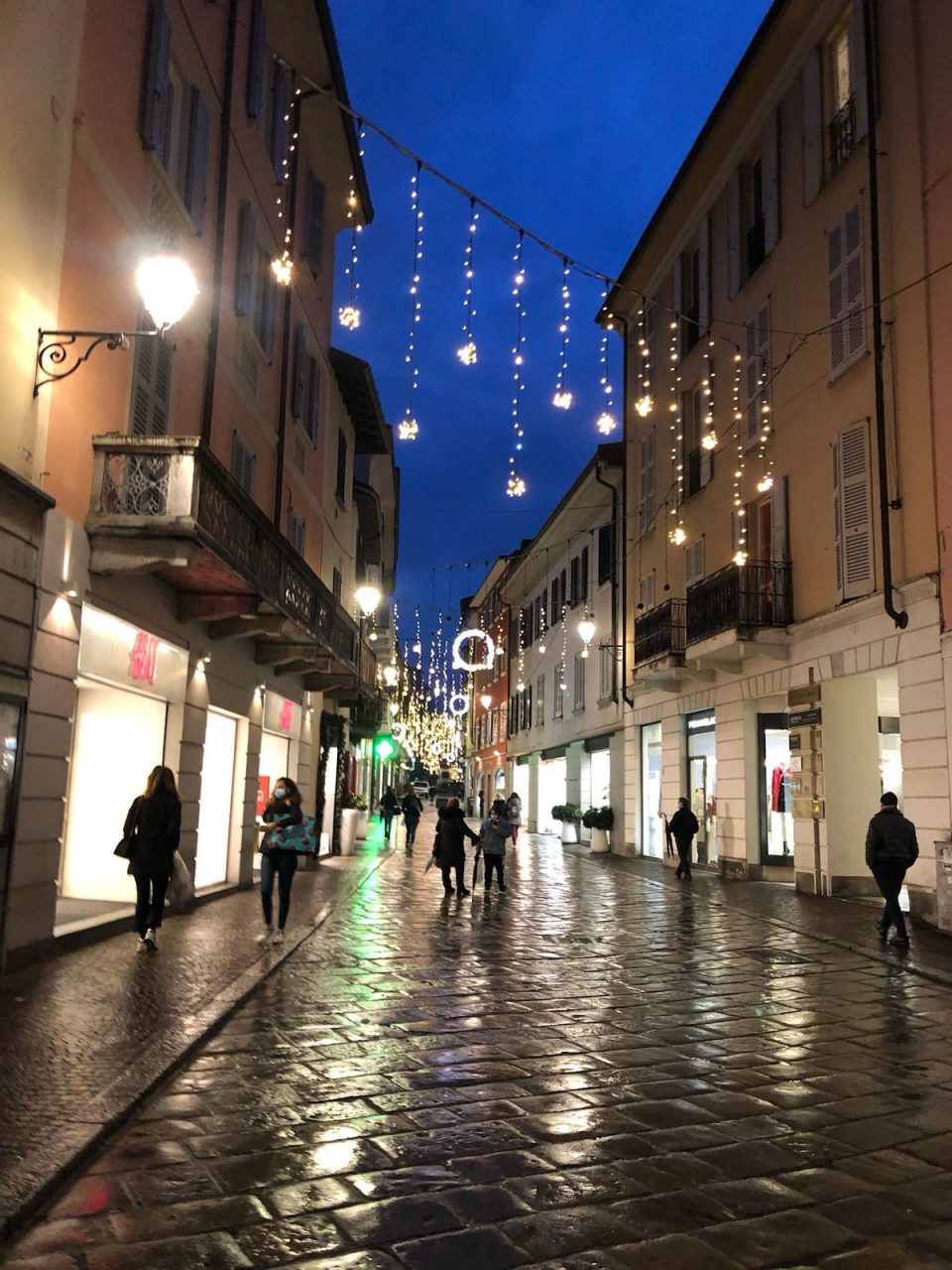 Nel salotto buono della città ora si respira aria di festa grazie alle luci regalate alla comunità da 150 commercianti. Complice anche la prima nevicata di stagione il clima davvero si fa natalizio.