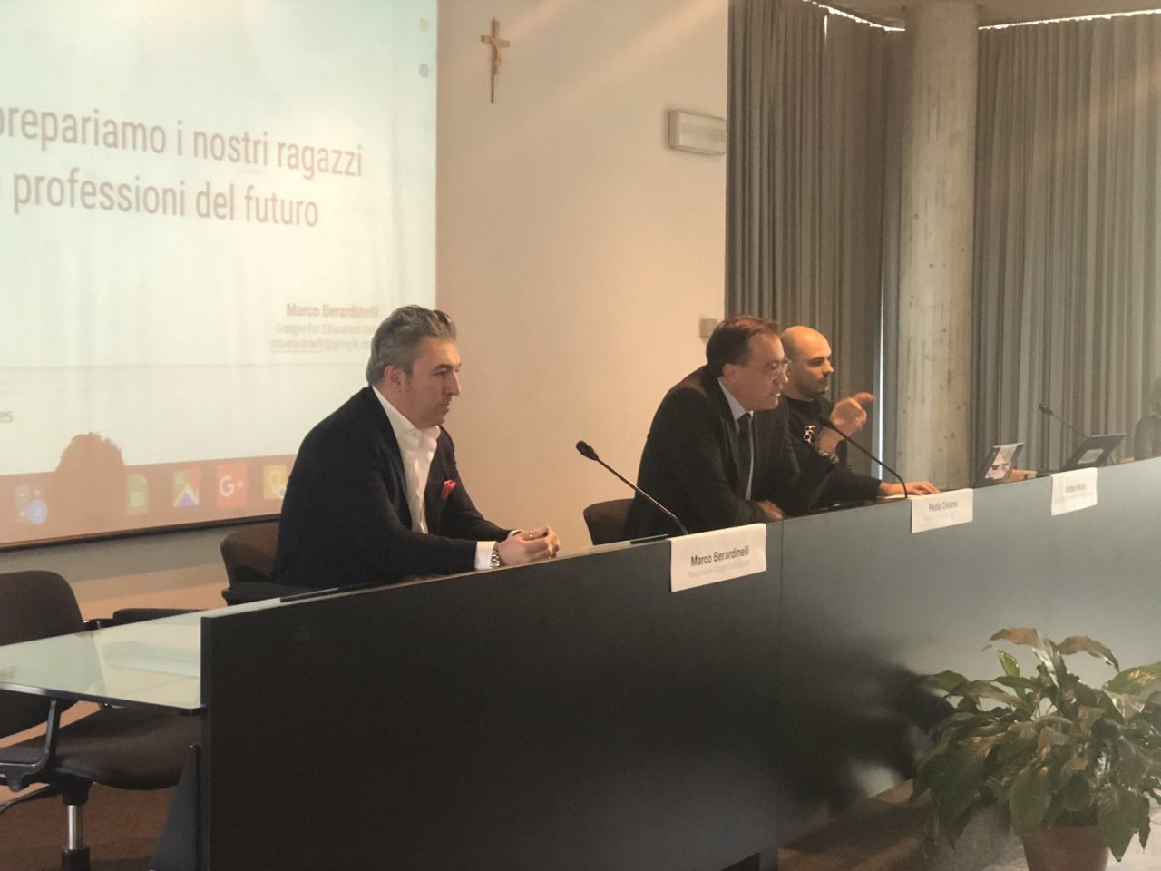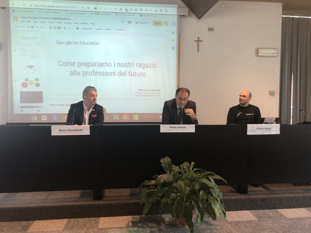 «Lavoriamo sugli aspetti educativi – ha dichiarato Cesana nel suo discorso introduttivo – e soprattutto a livello della didattica cerchiamo di mettere in atto i processi educativi che hanno come centralità la persona. Ci tengo infatti a sottolineare il tema dell’inclusione sociale. Risulta fondamentale anche il lavoro cooperativo, per operare insieme. E’ necessario inoltre progettare dei percorsi ingaggianti, perché i ragazzi si devono sentire ingaggiati. Altri temi importanti sono quello della metodologia e il lavoro sull’empowerment delle competenze, di quello che è il pensiero creativo, laterale, critico e cognitivo, oltre al problem solving. L’obiettivo deve essere quello di lavorare sulla dimensione umana e il supporto di Google è importante, perché riguarda il tema delle competenze della vita (life skills)».