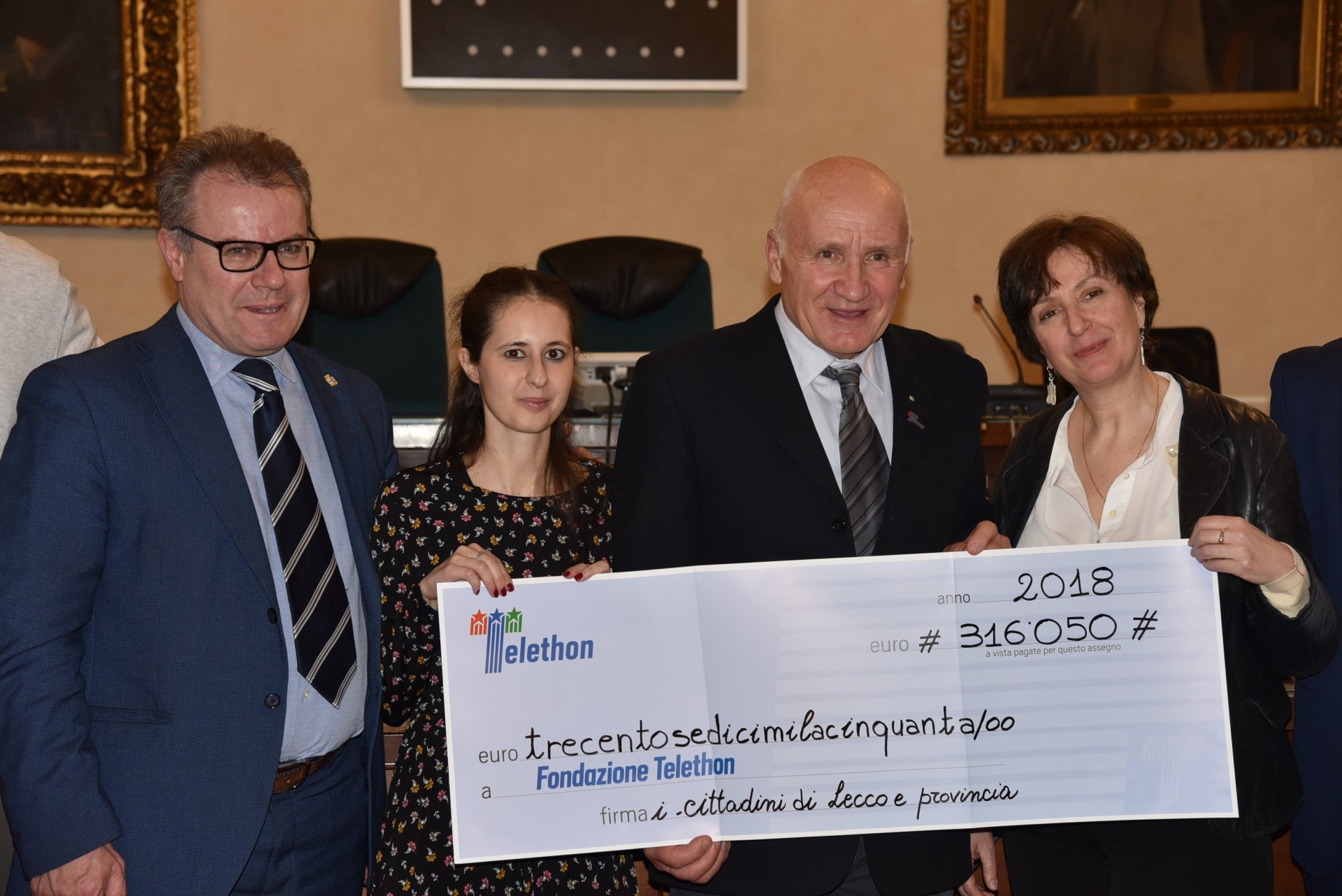 “La maratona Telethon per la raccolta fondi sul nostro territorio rappresenta un motivo di orgoglio per gli organizzatori e per i cittadini che in questi anni hanno offerto il loro contributo per rendere sempre più grande questo progetto. Anche nel 2018 sono state promosse sul territorio centinaia di iniziative di sensibilizzazione, informazione e raccolta fondi, che hanno coinvolto numerosi enti, istituzioni pubbliche e private, associazioni e cittadini per un unico e nobile obiettivo: sostenere la ricerca scientifica per la cura delle malattie genetiche. Ancora una volta la realtà lecchese ha dimostrato di essere viva e generosa: da tempo Lecco è la prima provincia italiana per raccolta fondi attraverso Telethon, con oltre 3 milioni di euro in ormai 28 anni; un risultato straordinario, di cui essere fieri – ha detto il presidente della Provincia Claudio Usuelli – Tutto ciò grazie alla costante tenacia, alla profonda passione, all’infaticabile e quotidiana opera di sensibilizzazione degli organizzatori e di coloro che si sono impegnati, dando il meglio di sé, per arrivare a questi prestigiosi risultati. Proprio grazie a questi fondi è stato possibile sostenere e potenziare la ricerca contro alcune rare malattie e dare così una concreta speranza per il futuro alle persone e alle loro famiglie che ogni giorno combattono una dura battaglia. A Renato Milani, a Gerolamo Fontana e ai loro collaboratori un doveroso ringraziamento per quanto fatto, insieme all’augurio di raggiungere altri prestigiosi traguardi”.