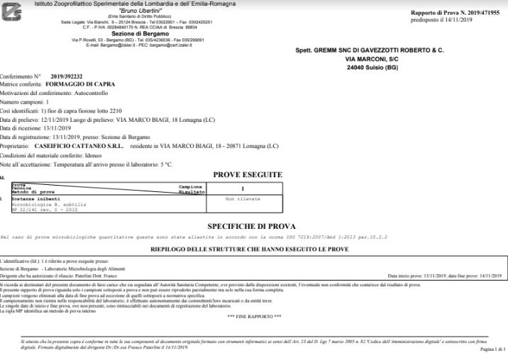 Il ritiro ha riguardato il lotto L.2210 e le date di scadenza 08/12/2019 e 09/12/2019. L’azienda, che da anni è uno dei riferimenti dell’eccellenza alimentare del territorio si è subito premurata di far eseguire delle contro analisi che sono state eseguite all’Istituto Zooprofilattico Sperimentale della Lombardia e dell`Emilia-Romagna “Bruno Ubertini” che è un Ente Sanitario di Diritto Pubblico.