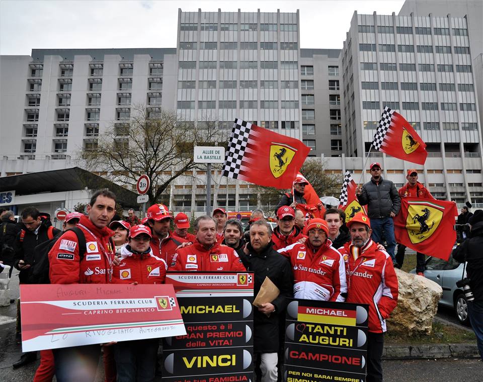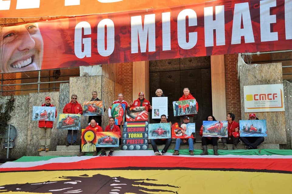All’indomani del terribile incidente sciistico del 29 dicembre 2013, il Ferrari Club di Caprino Bergamasco organizzò un presidio sotto le finestre dell’ospedale di Grenoble in segno di affetto e vicinanza al campione e alla sua famiglia.