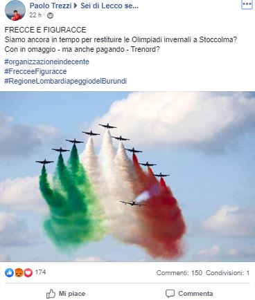 “A parte FS da dimenticare Lecco non è stata da meno, neanche un battello dedicato all’evento, cosa che è stata studiata l’ultima volta anni fa, per essere una grande Provincia Non Ci Siamo PROPRIO!!!”