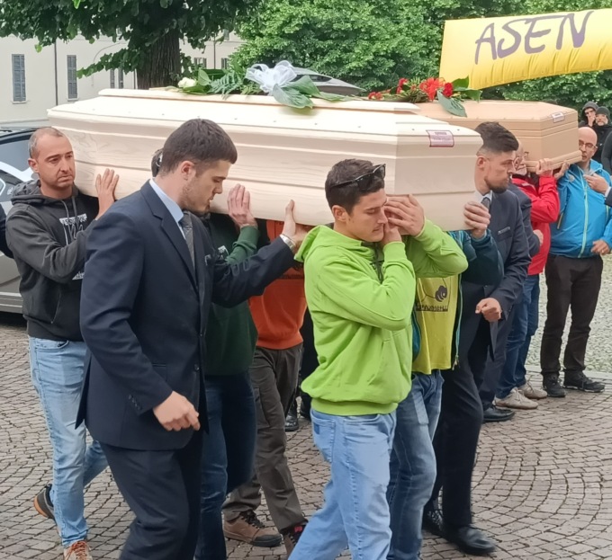 Una vera e propria folla ha salutato nel pomeriggio di oggi, venerdì 24 maggio 2024, gli alpinisti Valentino Alquà, 49 anni (avrebbe compiuto i 50 anni il 3 giugno) e Massimo Ratti, 35 anni (ne avrebbe compiuti 36 il 2 giugno), morti domenica 19 maggio sulle Alpi Svizzere. Presente alle esequie il sindaco Mauro Gattinoni e i membri del Soccorso alpino dove il 49enne Alquà lavorava come amministrativo.