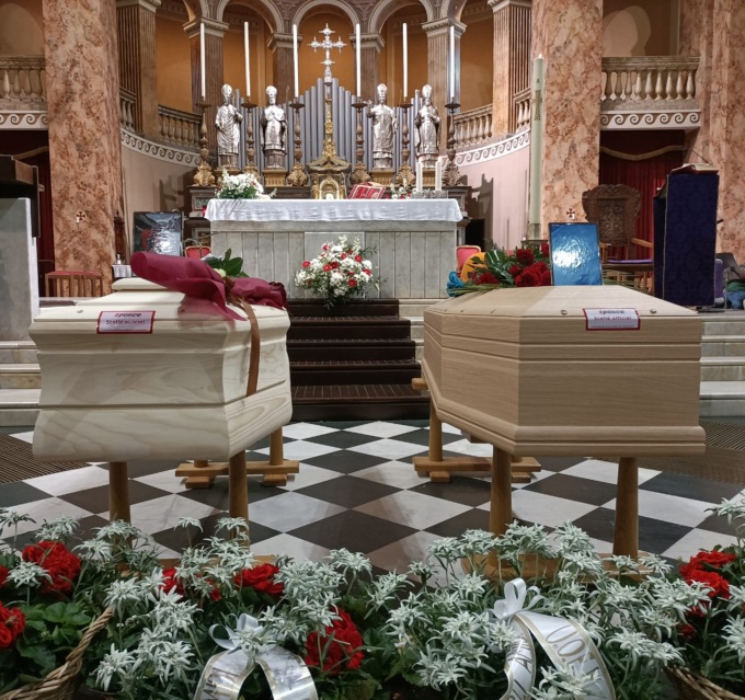Grande commozione e partecipazione all’ultimo saluto a Massimo e Valentino: “Quando la morte sopraggiunge improvvisa, in modo tragico, tutti ci sentiamo uniti”