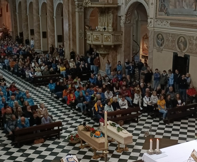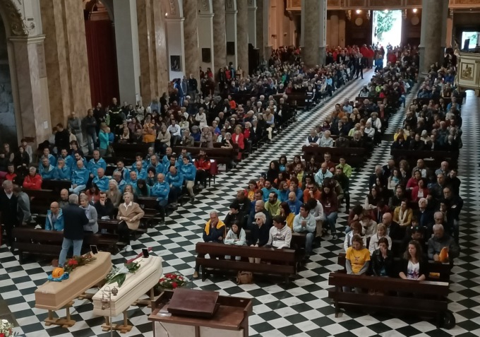 La grande basilica di San Nicolò era gremita di amici, parenti, conoscenti e amanti della montagna, una passione che i due amici condividevano da sempre. I funerali sono stati officiati dal parroco di Ballabio, don Benvenuto Riva, e concelebrati dal prevosto don Davide Milani e da padre Angelo Cupini, ma l’omelia è stata pronunciata da don Marco Rapelli, parroco di Germanedo, il rione lecchese da cui provenivano i due scialpinisti. La funzione è stata animata dalle corali di Germanedo e della Basilica.