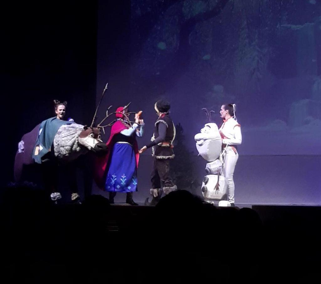 Sul palco i numerosi attori, cantanti e ballerini hanno trasformato il teatro in un regno incantato in cui tutti erano i protagonisti, regalando momenti di profonda riflessione e allo stesso tempo di grande gioia. In particolare Melissa Costa ha interpretato il ruolo di Anna e Ilaria Ruotolo quello di Elsa, Marco Calabrese era il principe Hans e Alessandro Combi Cristof, mentre Caterina Carenini e Arianna Caccia hanno recitato rispettivamente nei panni di Olaf e della renna Sven.