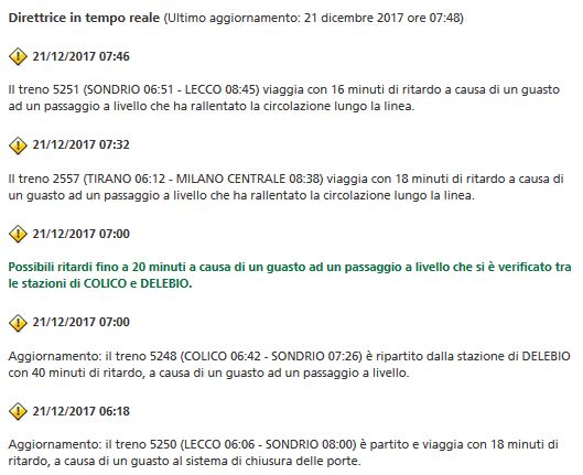 Il malfunzionamento del passaggio a livello situato tra Colico e Delebio infatti sta provocando ritardi. Ritardi che per altro erano iniziati ancor prima a causa di un guasto ad una porta.
