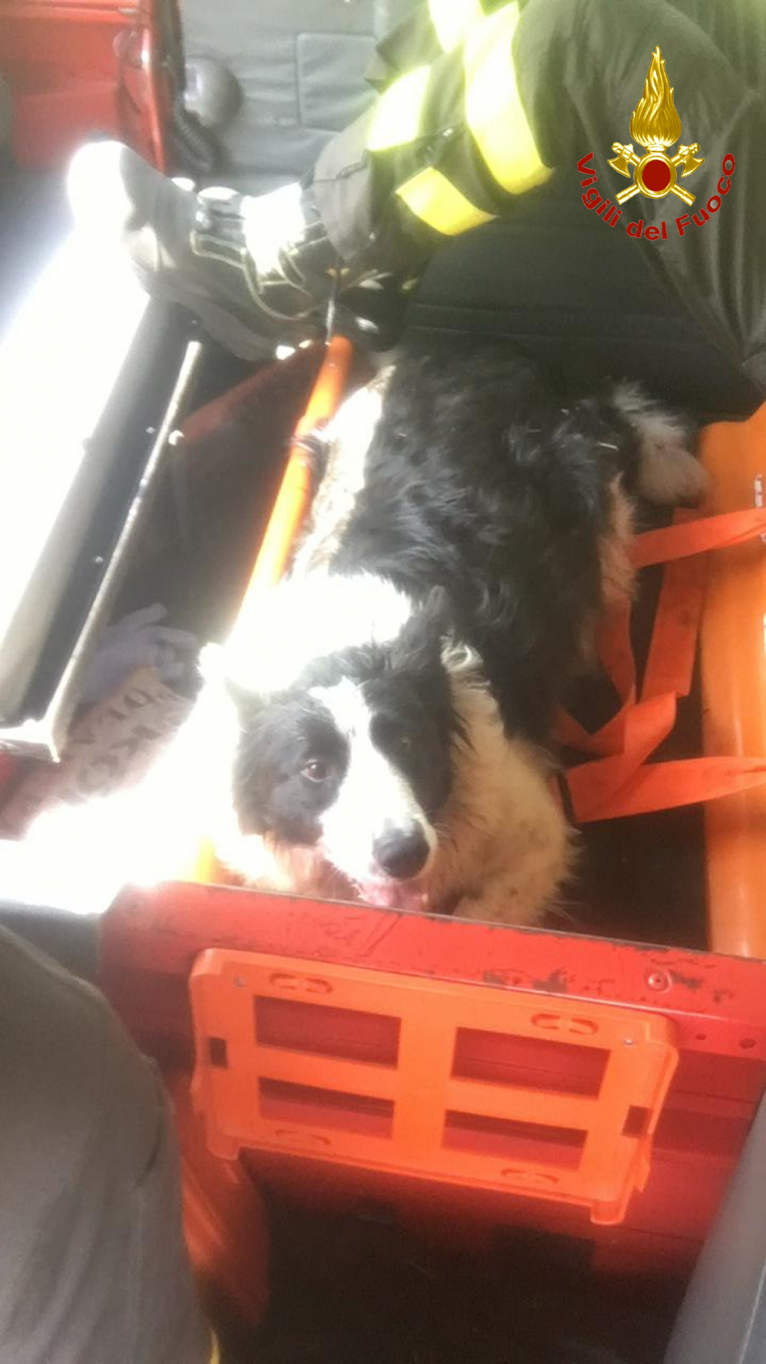 Per il recupero del cane sono state utilizzate manovre alpinistiche.