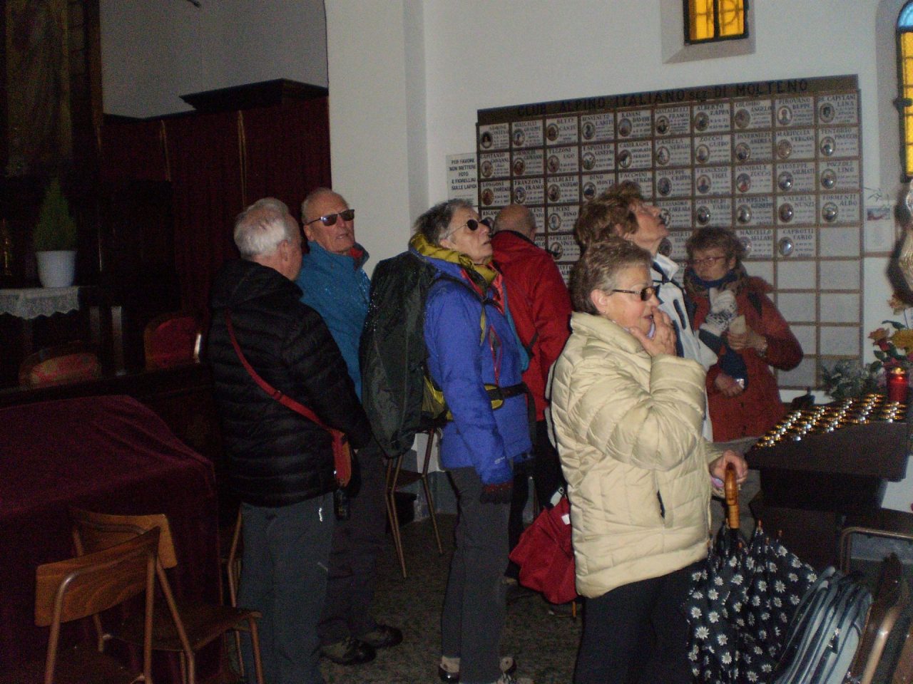 “D’obbligo una fermata alla centenaria Chiesetta del Sacro Cuore, dove Romano con appassionate parole ha ricordato Marcello Sellari, scomparso il 13 settembre scorso proprio nel corso di un’escursione del GEO. Fra le varie “piastrelle” che ricordano con una foto i caduti in montagna infatti vi è anche quella dedicata al compianto Presidente del Gruppo. Un canto e una preghiera hanno concluso il ricordo nella Chiesetta gentilmente aperta per l’occasione dalla signora Camilla”.