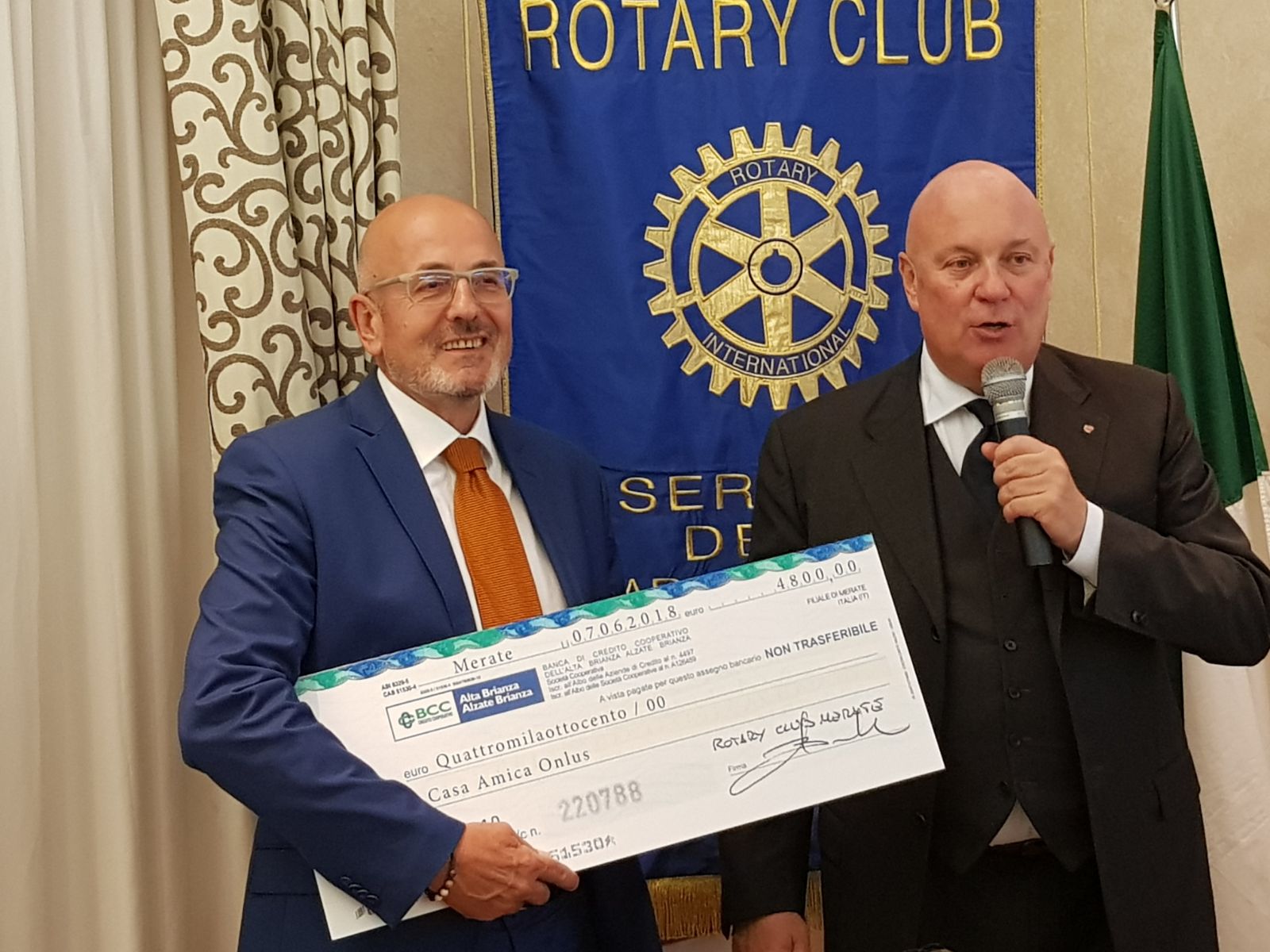 Grazie alla generosità del Rotary Club, Casa Amica, fiore all’occhiello del terzo settore meratese, potrà acquistare un pulmino nuovo. L’assegno è stato consegnato giovedì sera, nel corso della conviviale interclub organizzata dal sodalizio cittadino al ristorante Lido di Imbersago. I fondi sono stati raccolti grazie al service finanziato dal club di Merate con il contributo dei Rotary del Gruppo Brianza 2, che comprende i club di Varedo e del Seveso, Colli Briantei, Meda e delle Brughiere, e Seregno, Desio e Carate Brianza.