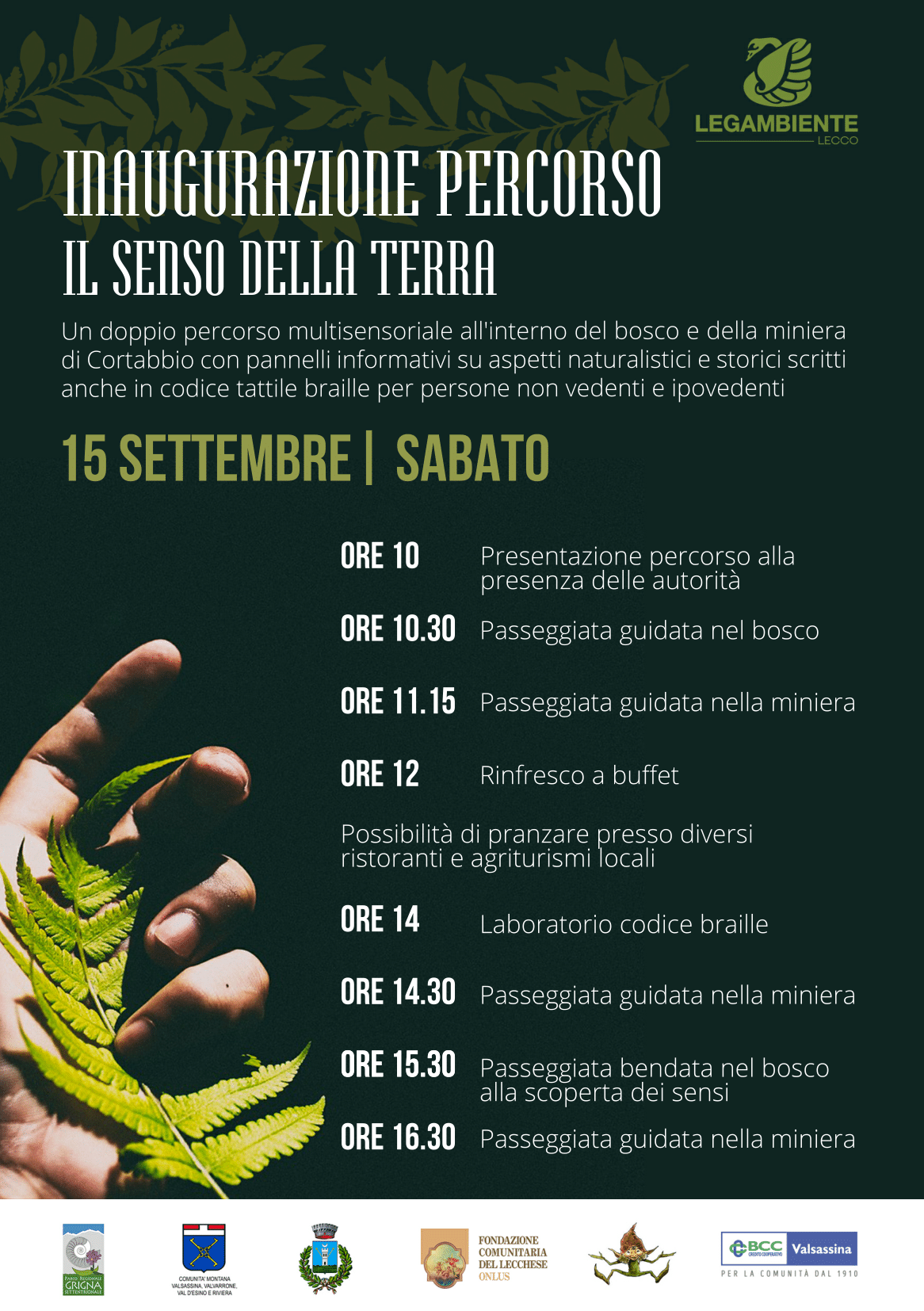 Nella giornata di sabato 15 settembre alle ore 10 Legambiente Lecco inaugurerà il progetto sensoriale “Il senso della terra”, doppio percorso sensoriale all’interno della Miniera di Cortabbio e nel bosco circostante con pannelli informativi su aspetti naturalistici e storici scritti anche in codice braille.