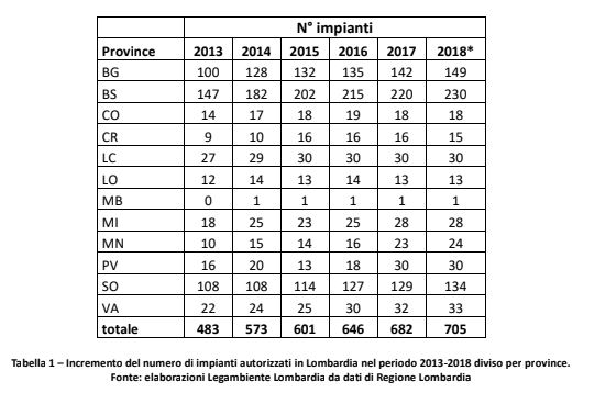 Il numero di domande per la realizzazione di nuove derivazioni e impianti idroelettrici (mini e micro idroelettrico) è cresciuto continuamente, in particolare nelle regioni alpine e appenniniche, con migliaia di richieste in fase di valutazione a fronte di migliaia di centraline già realizzate. Nella sola Lombardia, a giugno 2018, risultano attivi 705 piccoli impianti sotto i 3000 kw senza considerare le centinaia di richieste attualmente in fase di valutazione.