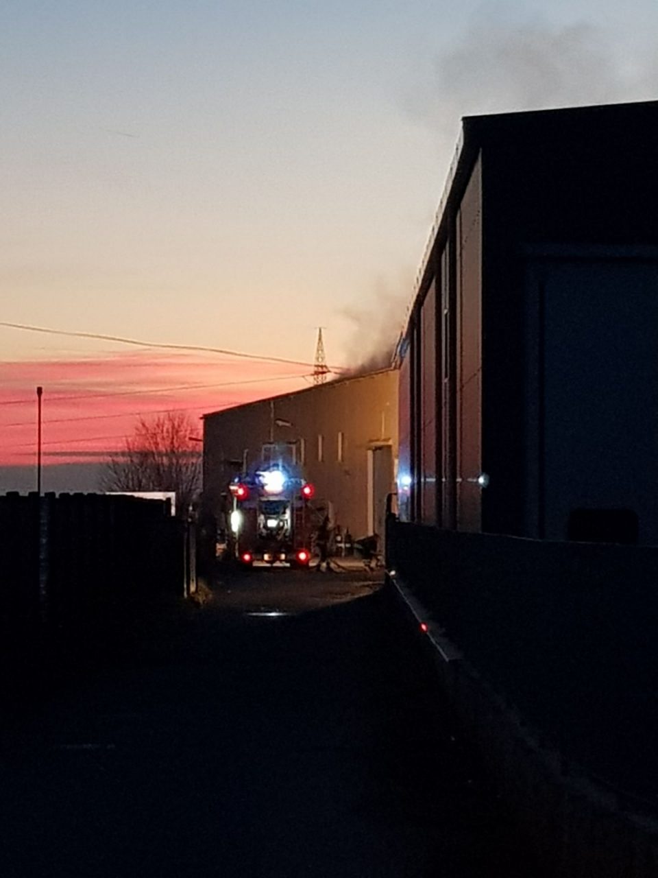 Grande incendio in un capannone in via Piave a Verderio Inferiore.
