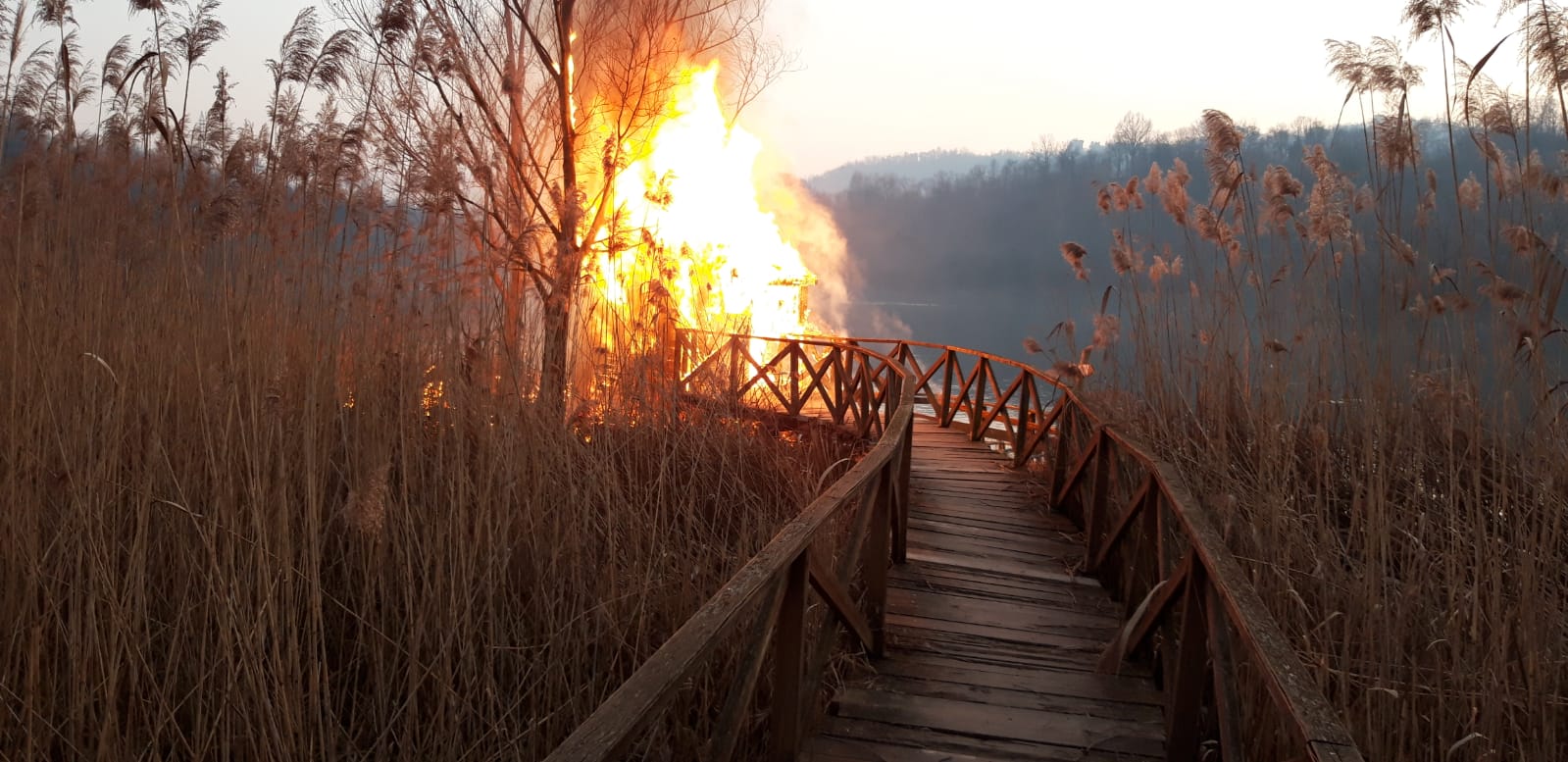 Incendio all’osservatorio ornitologico di Villa d’Adda. Sono in corso in questo momento le operazioni di spegnimento delle fiamme, che rischiano di propagarsi al canneto.