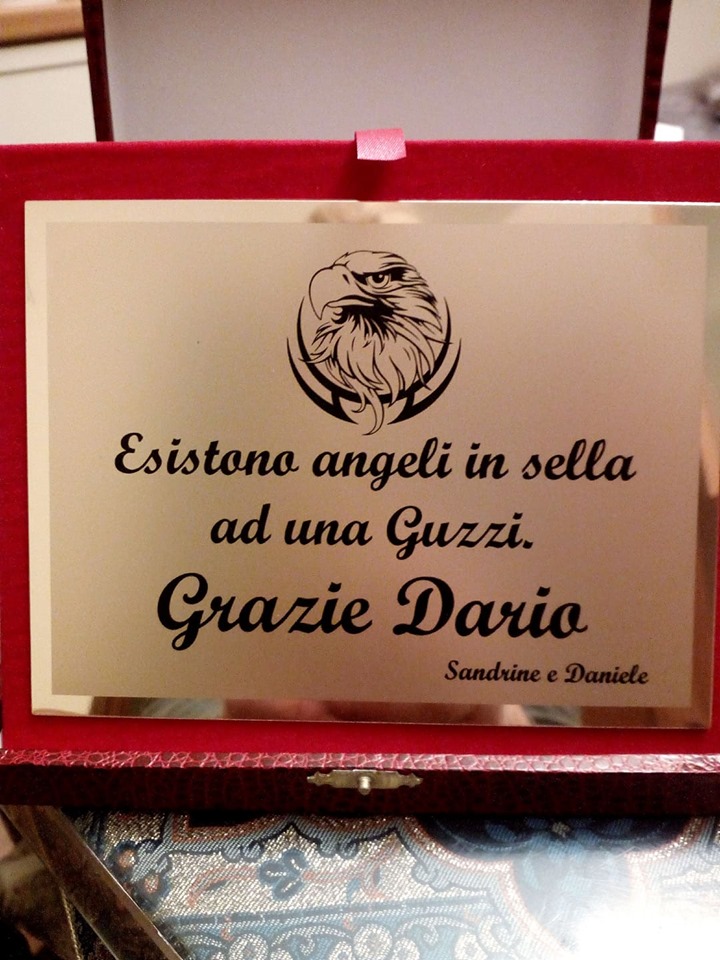 Dopo quasi cinque mesi Sandrine Poli e Daniele Tomiello hanno potuto finalmente abbracciare il loro «angelo guzzista» Dario. La coppia di motociclisti, residenti a Sostegno in provincia di Biella, infatti era stata vittima di un rocambolesco incidente avvenuto a settembre 2019 sulla Statale 36. Dopo un accorato appello, diffuso anche dal Giornale di Lecco, erano riusciti a trovare il loro salvatore e proprio lo questo weekend lo hanno finalmente incontrato e abbracciato. Per ringraziarlo gli hanno fatto anche un bellissimo omaggio: una targa che porta impressa la loro immensa riconoscenza.