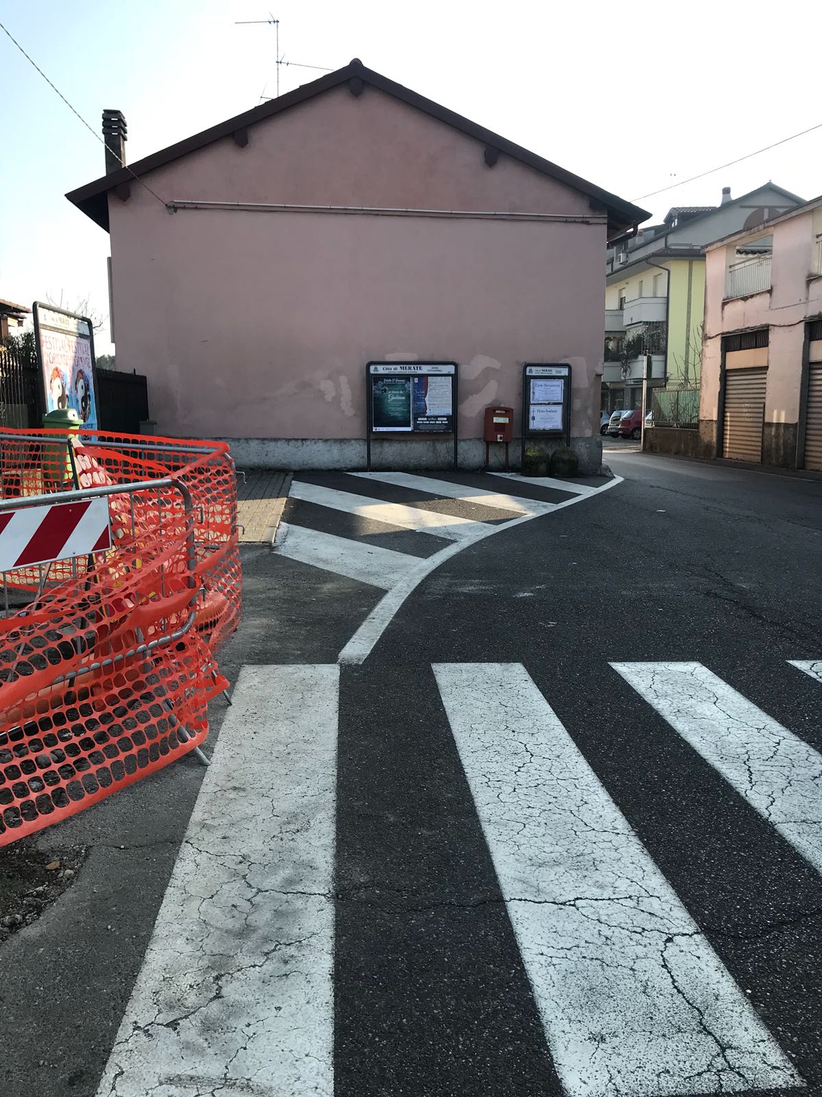 “Sul lato della chiesa abbiamo abbattuto gli alberi così da poter rifare completamente il marciapiede” spiega l’assessore ai Lavori pubblici Giuseppe Procopio. “Non si poteva fare diversamente, tale era il livello di compromissione del manto stradale. In ogni caso stiamo realizzando scivoli su tutti i lati dell’incrocio, così da mettere in sicurezza i pedoni. Sulla direttrice che porta alla Sernovella, in corrispondenza della curva che poi porta in centro a Merate, stiamo pensando di far installare degli archetti così da delimitare il transito delle vetture che su quel lato può mettere a serio rischio i pedoni”.
