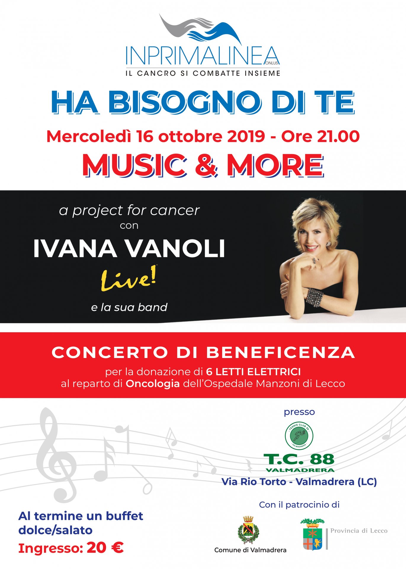 Inprimalinea Onlus è l’associazione dietro “Music & More – A project for cancer”, l’evento a scopo benefico che si svolgerà mercoledì 16 ottobre al Tennis Club 88 di Valmadrera.
