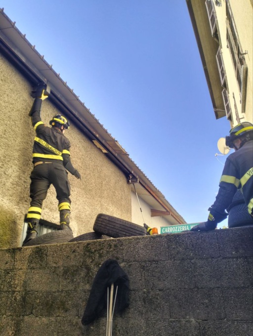 Intrappolato sotto una grondaia, gattino salvato dai Vigili del fuoco