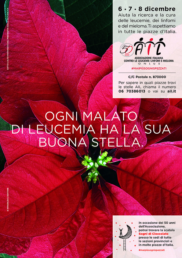 Le Stelle di Natale AIL ogni anno colorano di rosso le piazze italiane donando la speranza ai pazienti e alle loro famiglie. L’idea di raccogliere fondi offendo una piantina nasce dalla Sezione di Reggio Calabria nel 1989, quando le sedi AIL erano solo 8 in tutta Italia.