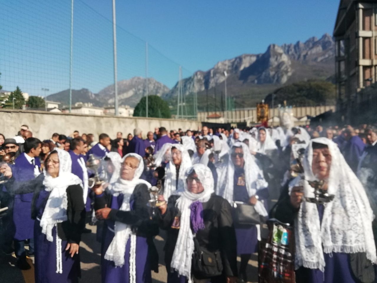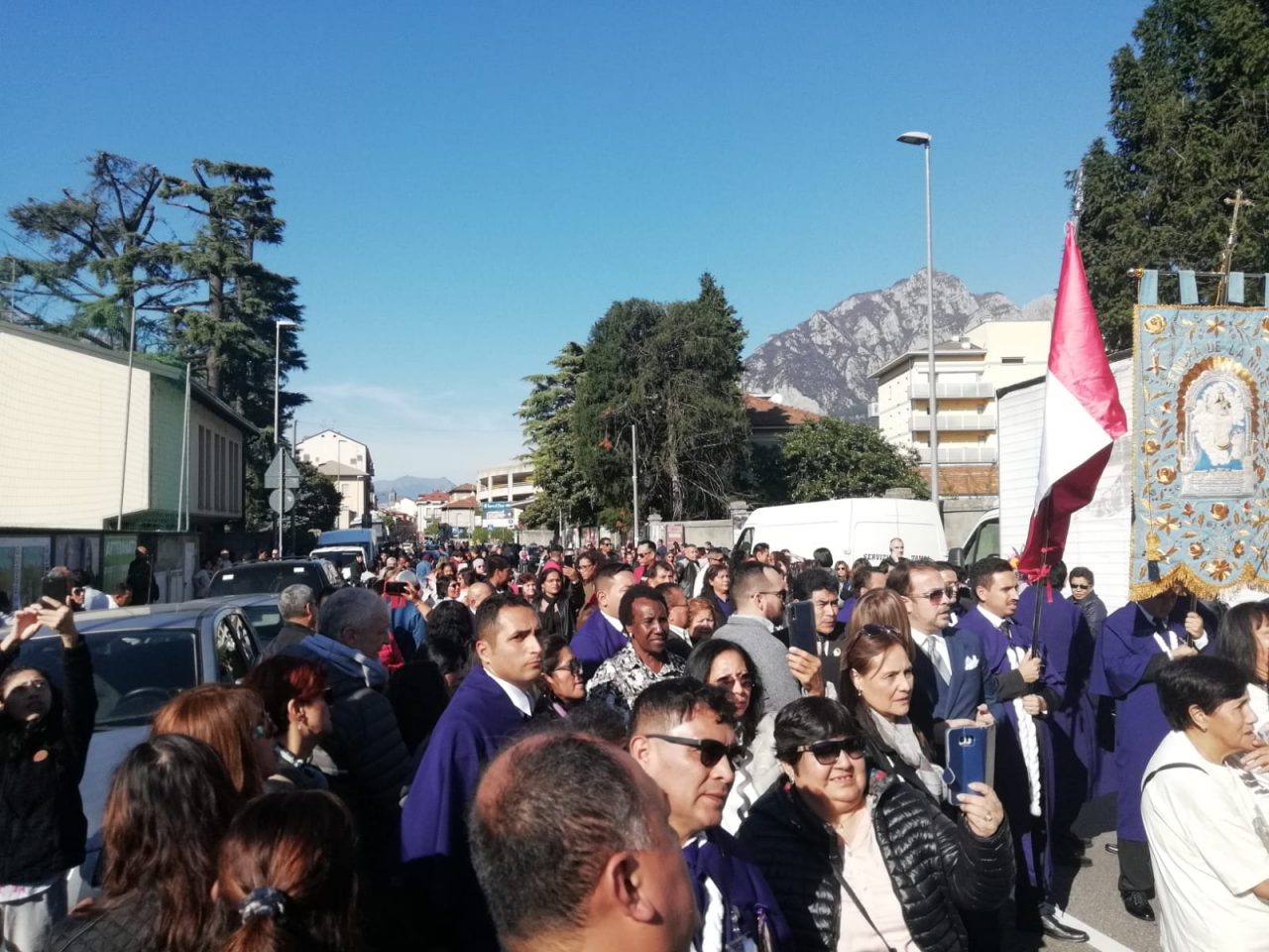 La processione è partita dall’Oratorio di Pescarenico in tarda mattinata. “Vicino al lago ed ai piedi del Monte Resegone, oggi, più bello che mai, con questo  splendido sole” ha commentato don Alberto Milani responsabile della pastorale migranti della diocesi di Milano. “Negli ultimi decenni tale evento si è svolto a Milano, ma poi per volontà del Cardinal Angelo Scola  dal 2015 la processione viene viene celebrata a turno in una delle città più significative del territorio ambrosiano. Quest anno si è deciso di portarla nella zona pastorale di Lecco. La festa è un grande segno di testimonianza cristiana, anche per i lecchesi”.