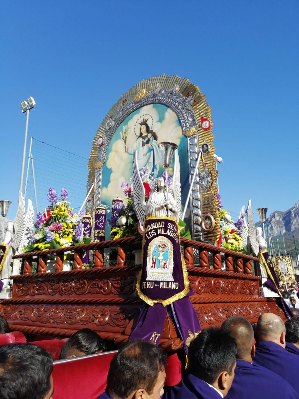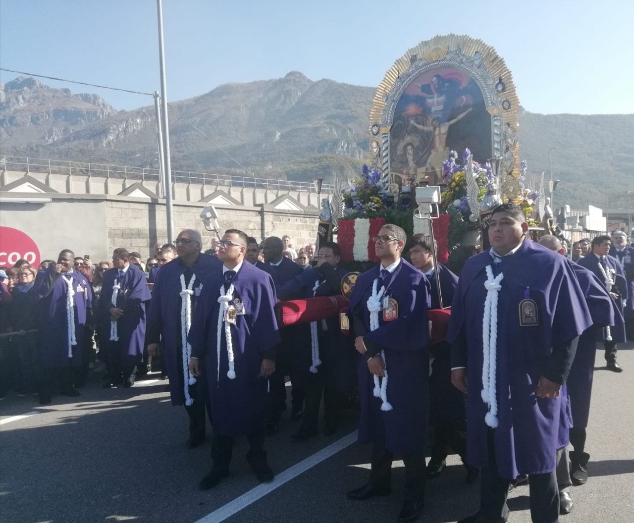 L’intera manifestazione si svolge a cura della confraternita Hermandad Senor de Los Milagros. La statua portata a braccia pesa due tonnellate e ogni 70 metri i portantini vestiti in abiti viola si danno il cambio. Le donne della confraternita seguono il simulacro sacro recando turiboli di incenso profumato in onore del Sèñor. Altre donne col capo coperto da un velo bianco hanno compiuto l’intero percorso camminando all’indietro,  col volto sempre rivolto alla statua, recitando il Rosario.