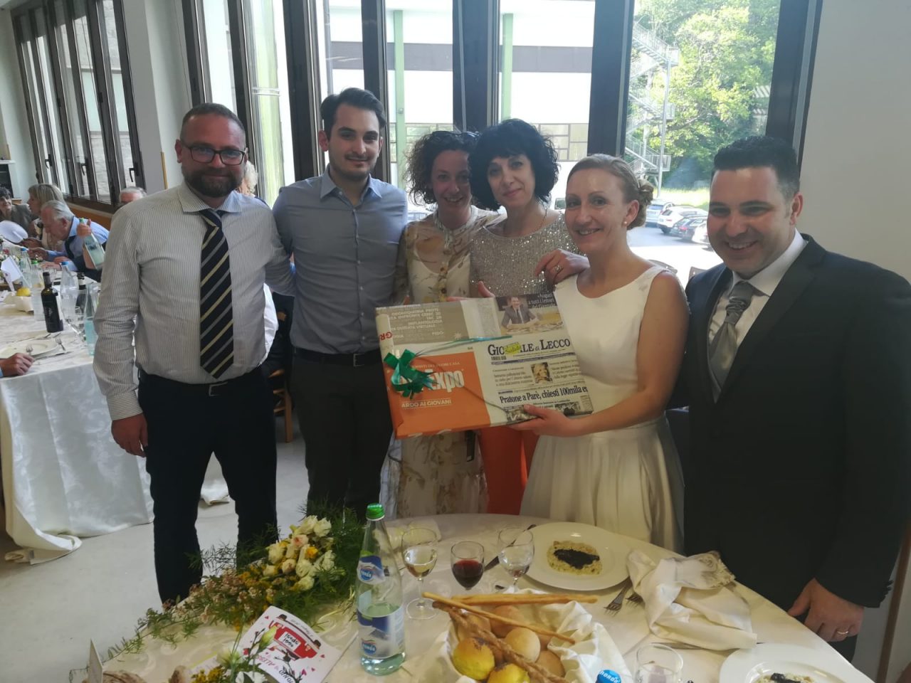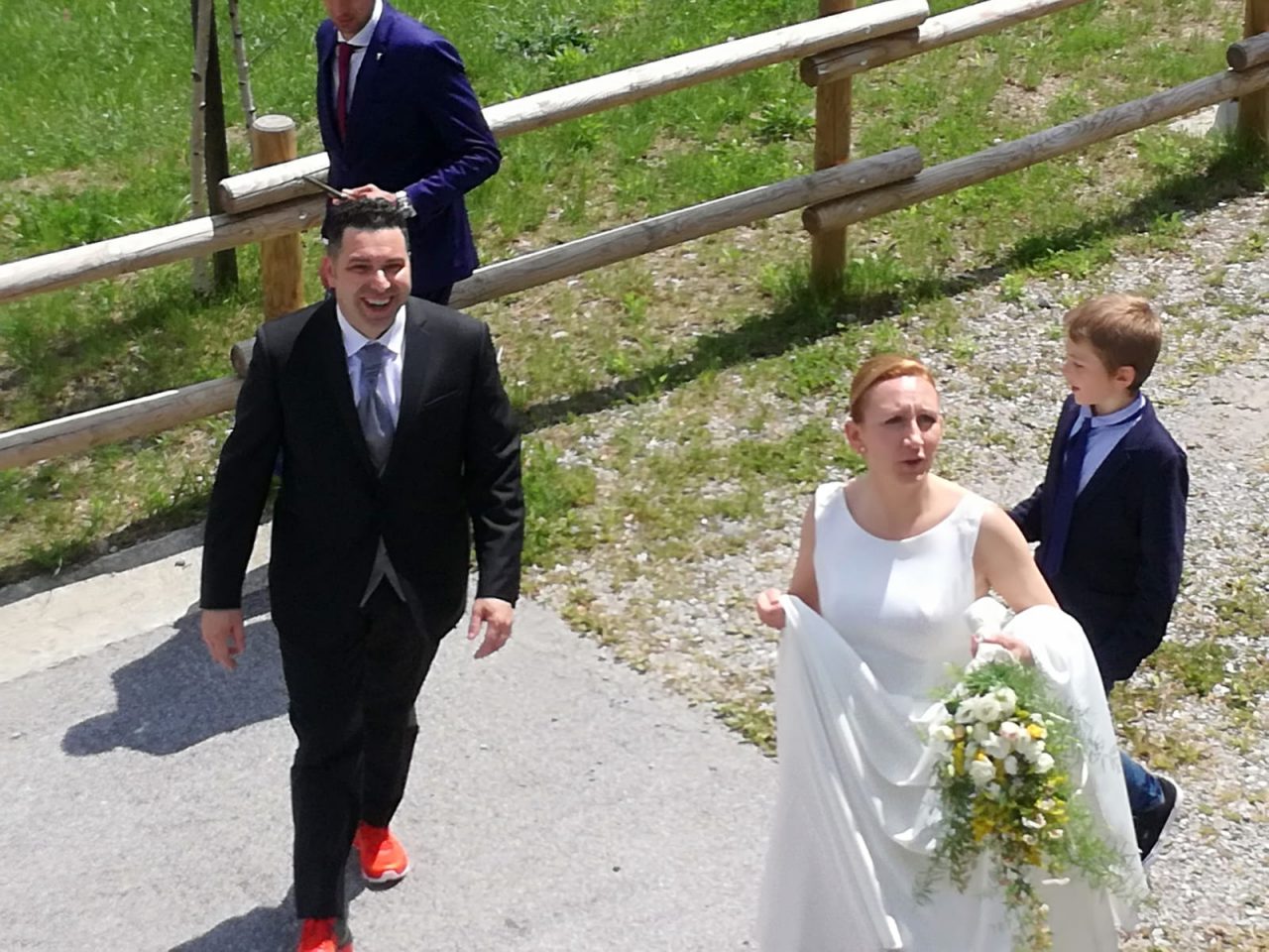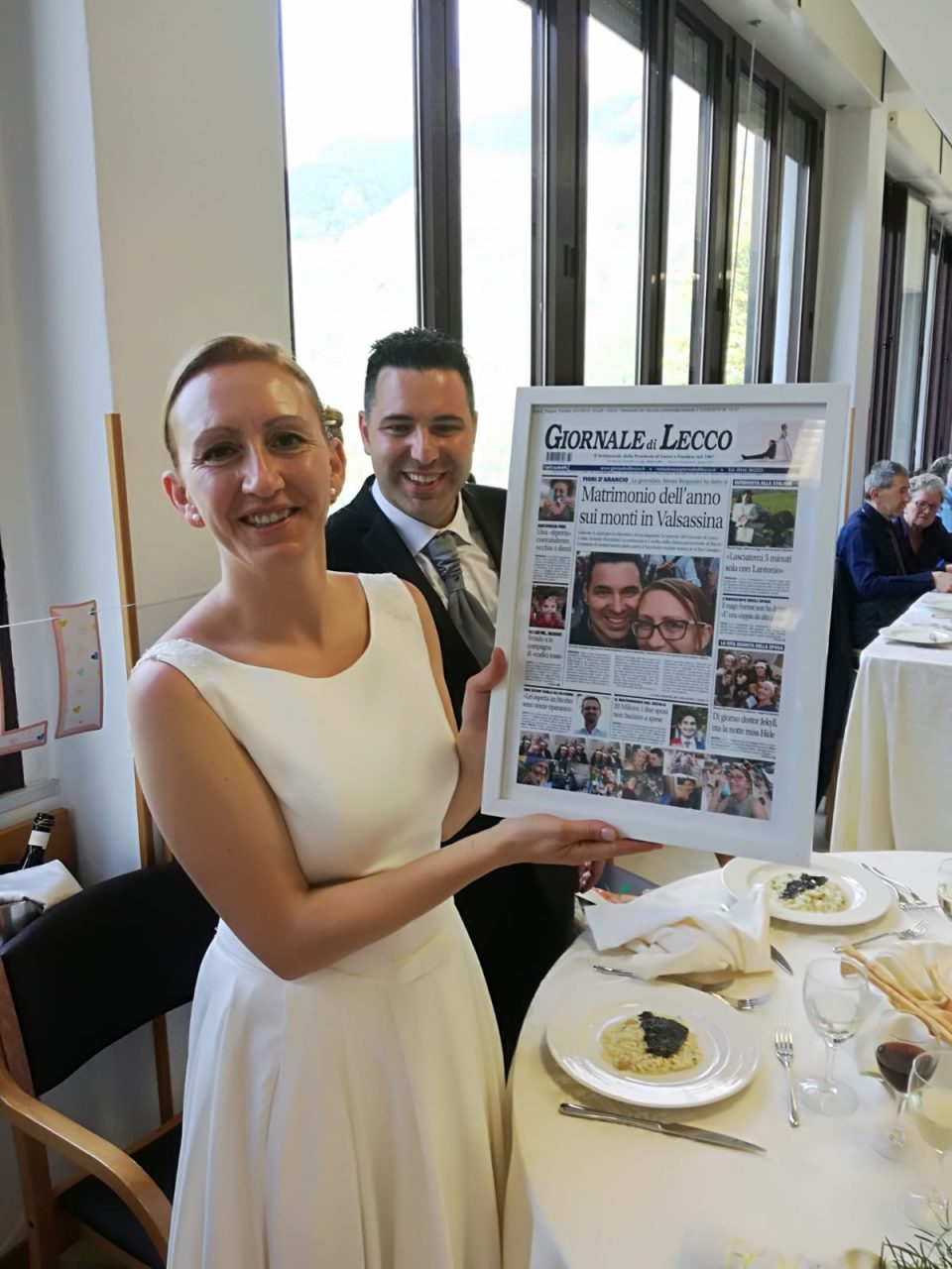 Quella di Alessia e Antonio è stata un’unione baciata dal sole che ha regalato agli sposi i suoi primi, caldi raggi. La coppia ha poi invitato, amici e parenti, ad un banchetto che si è tenuto al Cfp di Casargo. La meta è stata raggiunta dagli sposi in elicottero. Marito e moglie sono saliti sul velivolo a Pasturo e dopo aver sorvolato Barzio, sono scesi in Grigna per poi ripartire alla volta della scuola alberghiera dopo aver sorvolato l’Alpe Premaniga.