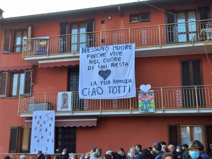 “Nessuno muore finchè vive nel cuore di chi resta, ciao Totti, la tua famiglia”. I cari di Thomas Tavola,il 19enne di Colle Brianza tragicamente scomparso sabato a causa delle ferite riportate durante un incidente mentre tagliava la legna tra Sirone e Dolzago, hanno affidato ad un lenzuolo bianco vergato di nero e appeso sul balcone di casa, il più doloroso dei messaggi di addio a un giovane che se ne è andato troppo presto. La scomparsa Totti, come tutti affettuosamente lo chiamavano, ha gettato nella disperazione una intera comunità che oggi, martedì 25 gennaio 2022 si è fermata per tributargli un ultimo commosso omaggio.