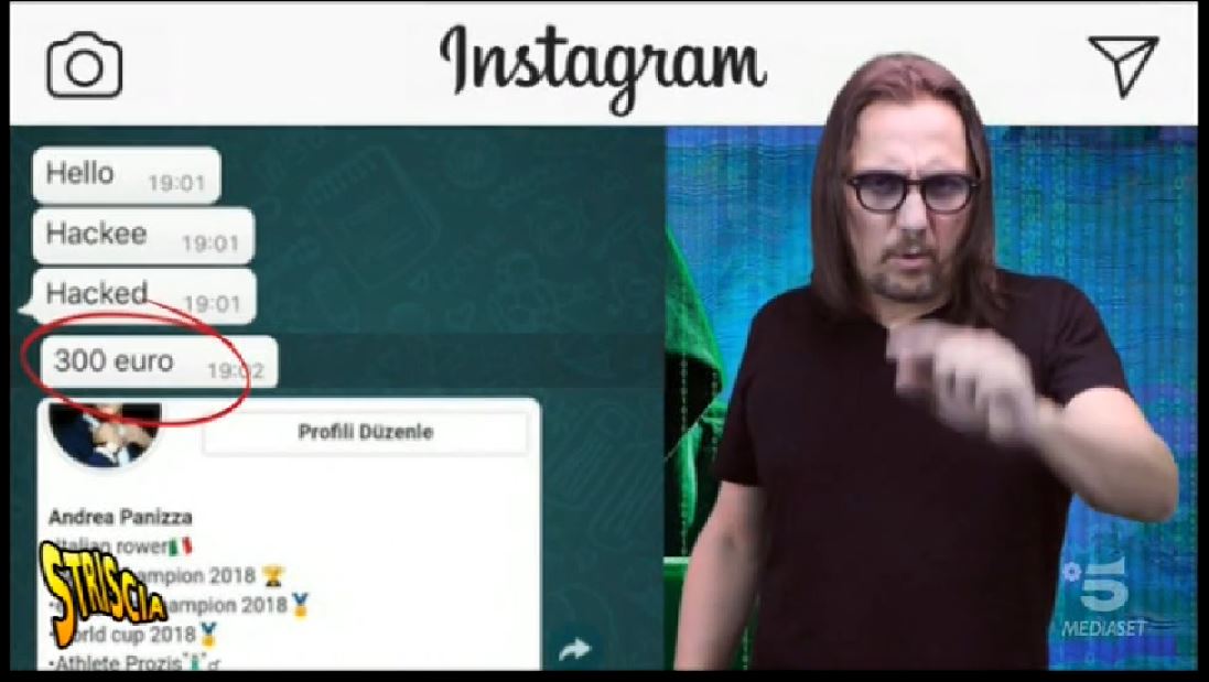 In compenso, è arrivata la richiesta di ben 300 euro, da parte di un hacker, la cui identità è stata poi ricondotta a quella di un profilo con fotografie ritraenti un ragazzo turco. Il campione si è quindi deciso a chiamare Striscia la Notizia per denunciare la vicenda.