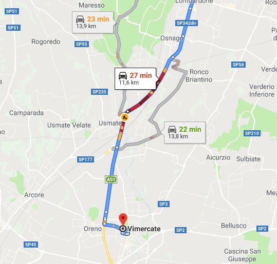 Per chi dovesse raggiungere la zona del Vimercatese a Osnago è consigliabile svoltare in via Guido rossa imboccando la Sp 136 a Ronco e quindi proseguire lungo la Sp117 per poi raggiungere la Tangenziale.