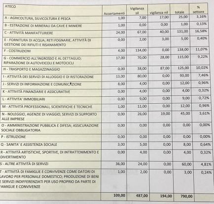 A 31 delle 33 imprese sanzionate la sospensione è stata revocata sulla scorta della regolarizzazione degli stessi lavoratori (e il pagamento di multe complessivamente pari a 60mila euro). Tra sanzioni amministrative e penali l’introito è stato ben più alto: 540mila euro , di cui 189mila pagati da imprese delle ristorazione.