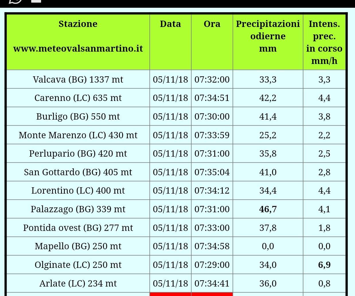 “Precipitazioni, anche a carattere di rovescio, sono attese nell’arco dell’intera giornata” spiega il Centro Meteo Val San Martino. “Notevoli gli accumuli già registrati nella notte”.