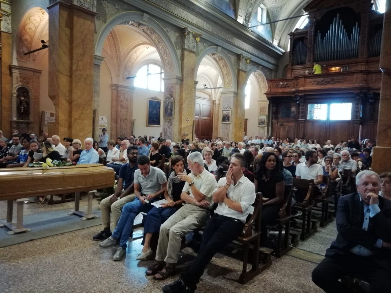 Tangibili sia il dolore che l’incredulità, lo strazio e la difficoltà di dare un perchè a una perdita tanto assurda e importante. La cerimonia, accompagnata dai coro multietnico Elikià, è stata celebrata da monsignor Luigi stucchi insieme a don Egidio Casalone, parroco di Castello, don Paolo Maria Ventura, responsabile dell’oratorio del rione e monsignor Giuseppe Longhi.E’ stato un canto di amore quello che ha aperto la funzione: “Non passi mai un giorno senza amarti, illumina la nostra oscurità”. Presenti in chiesa, inseme al gonfalone della città, il vicesindaco Francesca Bonacina e gli assessori Simona Piazza e Salvatore Rizzolino.