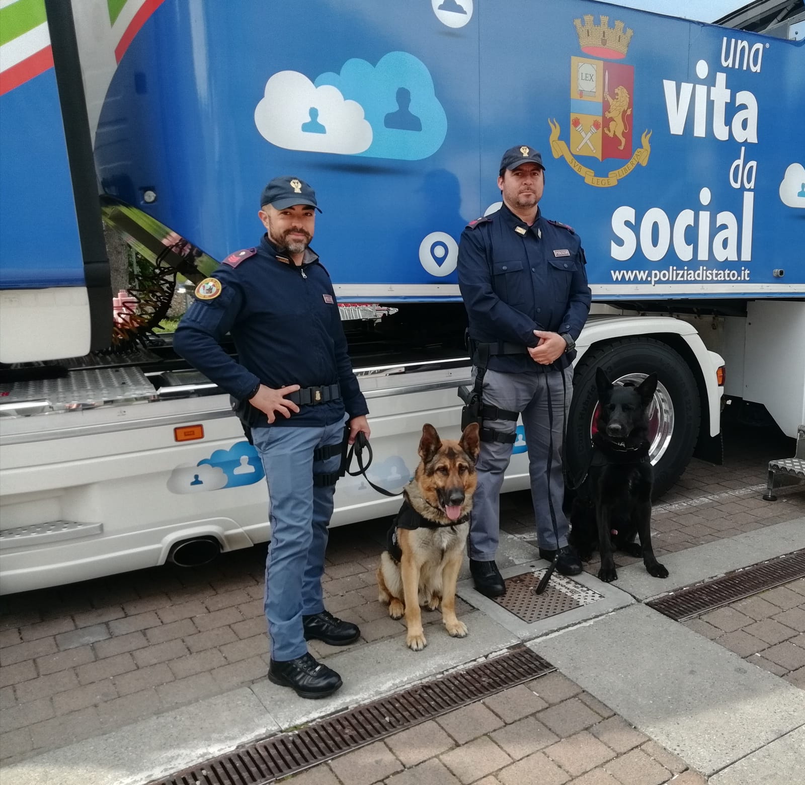 Alla tappa lecchese della kermesse itinerante “Una Vita da Social” promossa dalla Polizia Postale e delle Comunicazioni in collaborazione con il Ministero dell’Istruzione, dell’Università e della Ricerca e del Garante per l’Infanzia e l’Adolescenza, questa mattina hanno partecipato anche le unità cinofile della Polizia di Stato