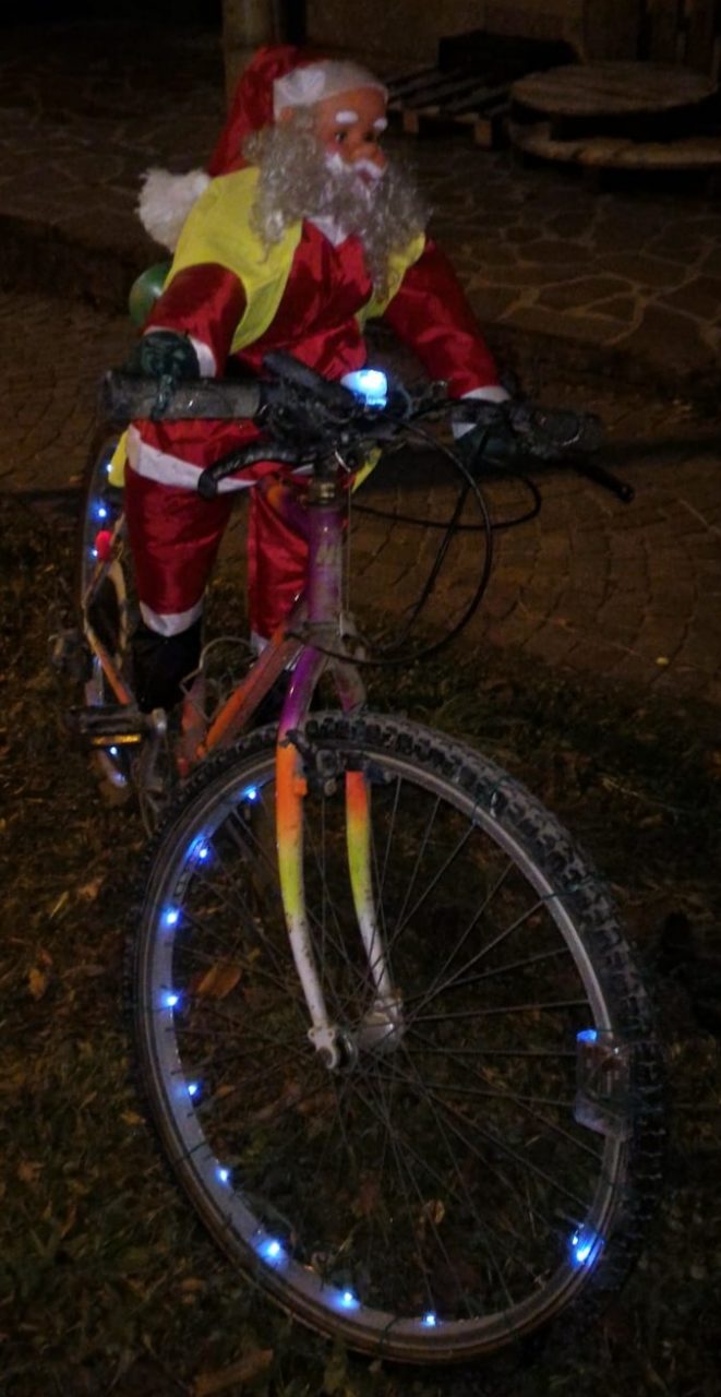 Dopo il mega concorso fotografico della scorsa estate dal titolo “Bici in fila indiana”, ora per Natale Fontana ha ideato una nuova iniziativa che si è concretizzata tardo pomeriggio di oggi, 7 dicembre 2018. Basta andare a Monte Marenzo, in via Manzoni per ammirare un presepe un albero di Natale illuminati. Cosa c’è di particolare? Ebbene a lato della strada c’è un Babbo Natale con la pettorina gialla in sella ad una bicicletta, anch’essa illuminata.