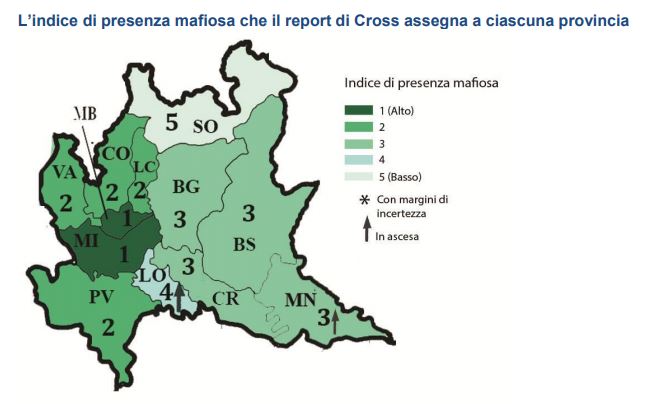 Secondo la ricerca, ad oggi, quella Lecchese è tra le province con più alto tasso di infiltrazioni. In una scala da uno a cinque, dove 5 è il livello più basso, il Lecchese ottiene un poco lusinghiero 2. Solo nella Brianza monzese e nel Milanese la situazione risulta peggiore.
