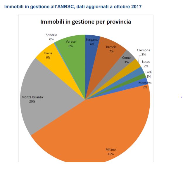 Da decenni la Lombardia rientra tra le regioni con il maggior numero di beni immobili sequestrati e confiscati. I beni presenti la rendono ad ottobre 2017 la quinta regione per numero di immobili confiscati. Ovvero dopo la Sicilia, la Calabria, la Campania e la Puglia. Secondo i dati forniti da Open Re.G.I.O gli immobili sequestrati e confiscati alla criminalità organizzata, in Lombardia, in gestione all’ANBSC, ad ottobre 2017 ammontano a 1886. Di questi il 2% si trova nel lecchese.