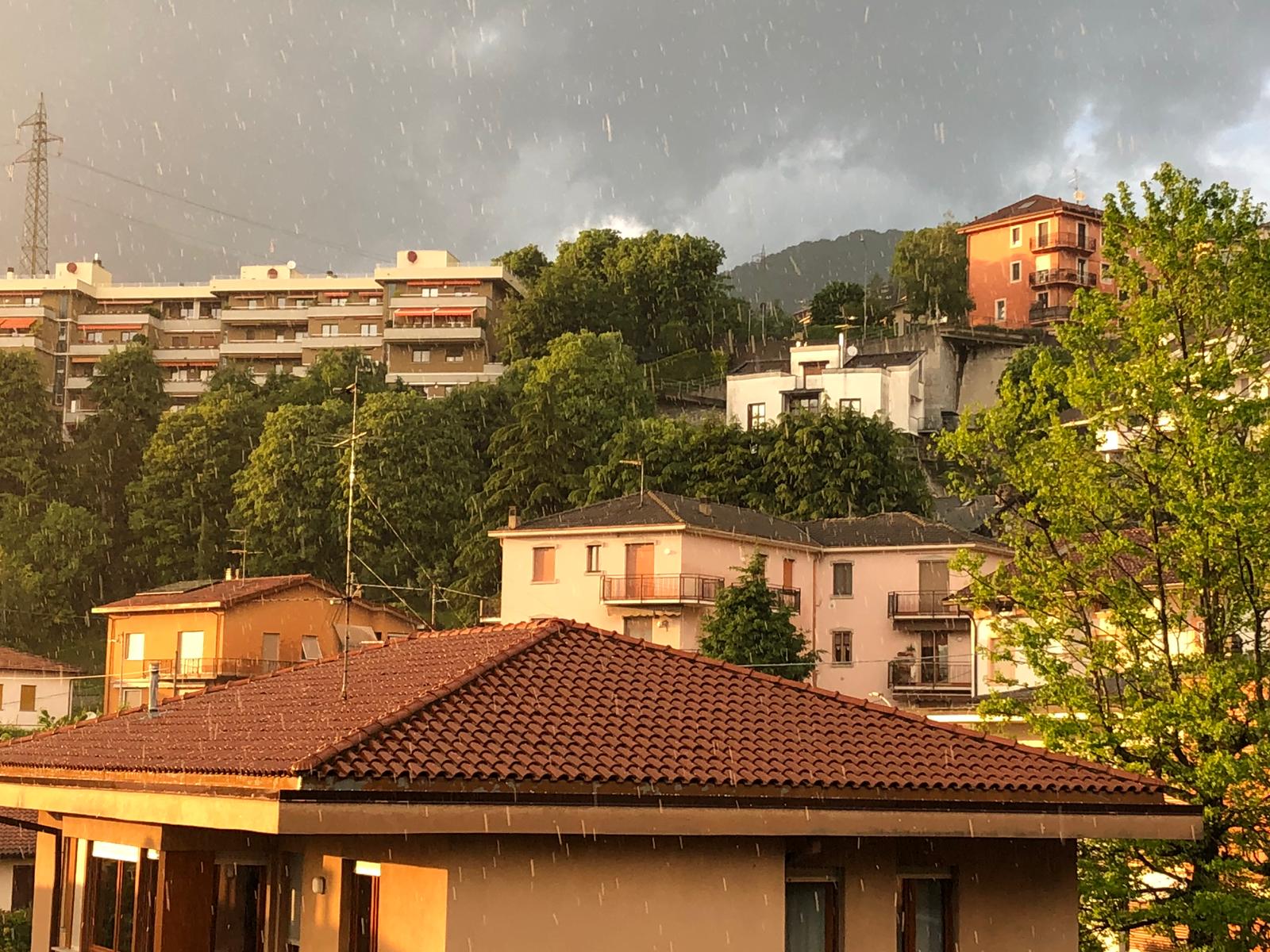 Un maggio davvero pazzo:  tra tanta pioggia e qualche occhiata di sole, stasera a Lecco ha fatto la sua comparsa anche la grandine.