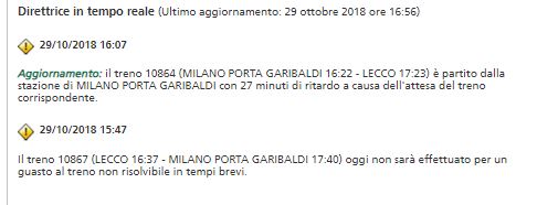 Maltempo, ritardi sulla Tirano – Sondrio – Lecco – Milano