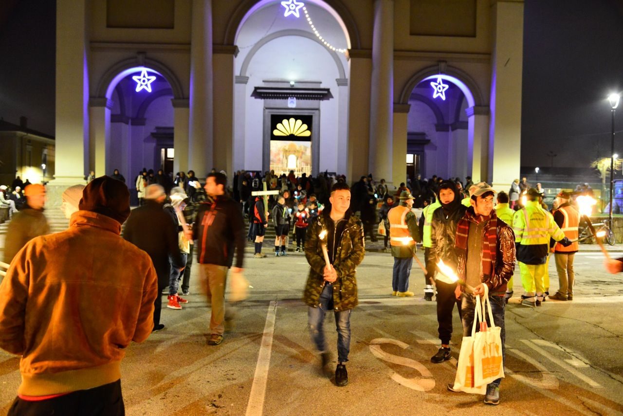 La processione è cominciata a Calusco d’Adda nel pomeriggio, presso la chiesa parrocchiale. Ad aprire il corteo è stata una croce costruita con i legni di alcuni barconi approdati a Lampedusa, poi benedetta da papa Francesco. Dopodiché i presenti si sono incamminati fino a Villa d’Adda, dove, all’interno della palestra dell’Istituto Sacro Cuore, c’è stato il secondo momento di meditazione.