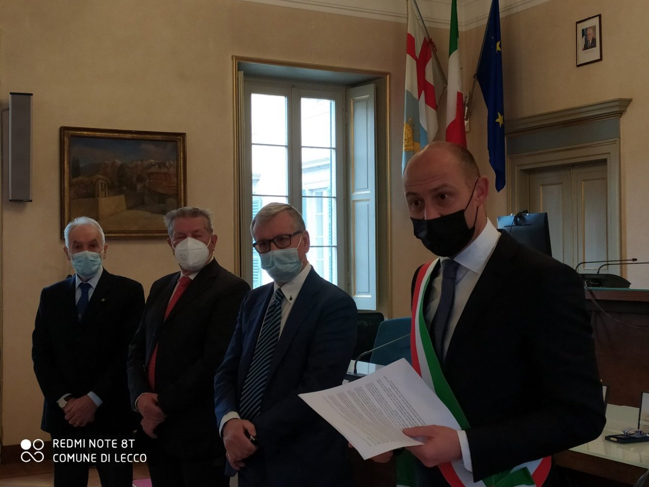 Presenti alla cerimonia i Prefetto di Lecco, Castrese de Rosa, il Sindaco di Lecco Mauro Gattinoni, il presidente della federazione provinciale di Lecco dell’Istituto del Nastro Azzurro Mario Nasatti, il presidente della sezione ANPI della Valsassina Giuseppe Augusto Amanti e la vicepresidente di ANPI Lecco Patrizia Milani.