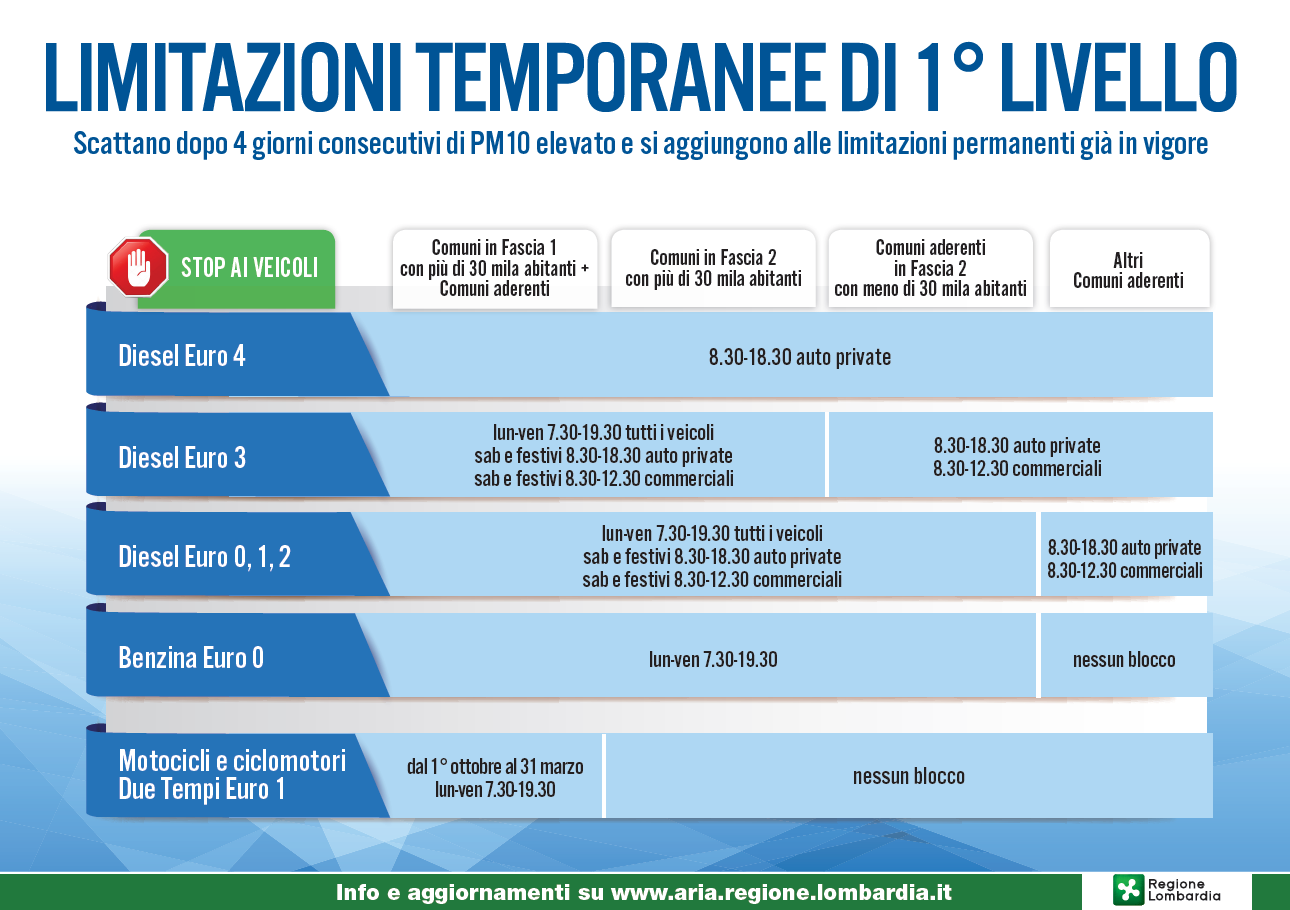 Scattano dopo 4 giorni consecutivi di PM10 elevato e si aggiungono alle limitazioni permanenti già in vigore: